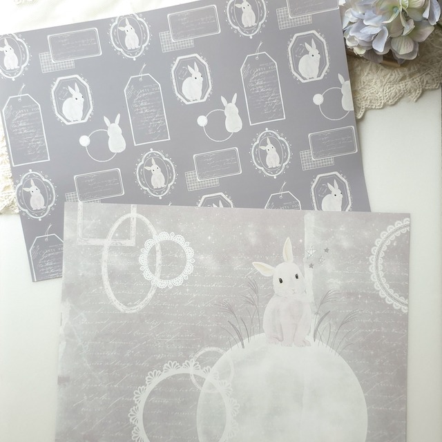 「中秋の名月」着想のデザインペーパーです。 ベースは落ち着いたグレー、白いうさぎとデザインでシックでモノトーンな雰囲気に。 二色しか使われていないシンプルなデザインです。 中秋の名月着想ですが、時期を問わず使えるように描きデザインしました。 コラージュ、ファイル作り、ラッピングなど紙ものクラフトに是非ご利用ください♪ *色に関して 今回撮影時にグレーの色にかなり苦戦しました。 写真は私の目視で一番近い色を選びましたが、環境によって(曇りや晴れ、自然光か屋内か)グレーの色が変化して見えます。 〇セット内容〇 両面印刷 10枚1セット 〇サイズ〇 A4サイズ (21cm×29.7cm) 【素材】 上質紙 90k 印刷業者様に印刷をお願いしておりますので美しい仕上がりです。 発色が綺麗な方法で印刷をお願いしておりくすみが感じられない美しさでご提供しています。 【発送方法】 発送はクリックポストにて行っております。 心をこめて、丁寧な梱包を心がけています。 配送方法はクリックポストを利用しておりますが、注文数が多い場合重さや厚みの関係で複数に分けて発送する場合がございます。 ご了承のうえ、ご注文いただければ嬉しいです。 またその他配送方法に関しましてご相談等ございましたら、ご注文前にメッセージなどいただけたら嬉しいです。 【商用利用に関して】 原本、現品に限り、おすそわけファイルやジャンクジャーナルなどの制作に利用可能です。 必ず有形の形で素材の一部(加工などをして)として利用してください。 原則リンクやクレジットは必要ないです。 ですが、使用したことをどこかに明記していただけたときにはとても嬉しいです。 【禁止事項】 コピーをしての販売、転売(定価より高い価格での販売)、複製、模倣をしないでください。 その他モラルの範囲内での使用をお願いいたします。 不明点などがありましたら、お気軽にお問い合わせください。 【ご注意】 *お使いの機器によりモニターの解像度が異なります。 画像と実際の商品では色味が異なる場合がありますこと、ご理解ください。 *また印刷、紙質によりまれに黒点が入っているペーパーもございます。 検品時、特に目立つものは省いていますが印刷上の仕様になりますことご了承くださいませ。