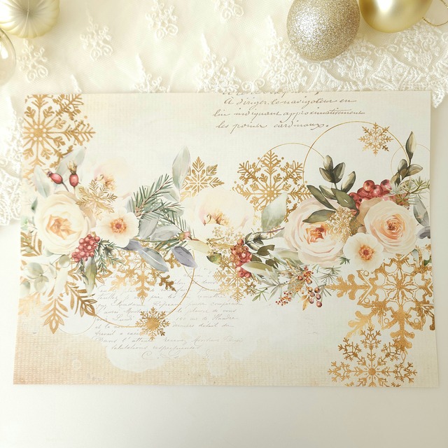 2024年のクリスマステーマは「ゴールドクリスマス」 ホワイトローズとゴールドの雪の結晶が華やかなデザインペーパーです。 クリスマスのキラキラした雰囲気をたっぷり堪能していただけます。 ジャーナルやおすそわけファイルはもちろん、一枚絵のようにそのまま飾っていただいても美しいペーパーです。 〇セット内容〇 両面印刷 10枚1セット 〇サイズ〇 A4サイズ (21cm×29.7cm) 【素材】 上質紙 90k 印刷業者様に印刷をお願いしておりますので美しい仕上がりです。 発色が綺麗な方法で印刷をお願いしています。 【発送方法】 発送はクリックポストにて行っております。 心をこめて、丁寧な梱包を心がけています。 配送方法はクリックポストを利用しておりますが、注文数が多い場合重さや厚みの関係で複数に分けて発送する場合がございます。 ご了承のうえ、ご注文いただければ嬉しいです。 またその他配送方法に関しましてご相談等ございましたら、ご注文前にメッセージなどいただけたら嬉しいです。 【商用利用に関して】 原本、現品に限り、おすそわけファイルやジャンクジャーナルなどの制作に利用可能です。 必ず有形の形で素材の一部(加工などをして)として利用してください。 原則リンクやクレジットは必要ないです。 ですが、使用したことをどこかに明記していただけたときにはとても嬉しいです。 【禁止事項】 コピーをしての販売、転売(定価より高い価格での販売)、複製、模倣をしないでください。 その他モラルの範囲内での使用をお願いいたします。 不明点などがありましたら、お気軽にお問い合わせください。 【ご注意】 お使いの機器によりモニターの解像度が異なります。 画像と実際の商品では色味が異なる場合がありますこと、ご理解ください。