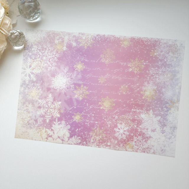 クリスマスの赤い実がうっすらと浮かぶポストカードのようなデザインに雪の結晶が舞う美しいトレーシングペーパーです。 赤色もグラデーションで高級感のあるデザインしました。 眺めるだけでも美しい透け感のペーパーです。 〇セット内容〇 片面印刷 8枚1セット 〇サイズ〇 A4サイズ (21cm×29.7cm) 【素材】 トレーシングペーパー 印刷業者様に印刷をお願いしておりますので美しい仕上がりです。 【発送方法】 発送はクリックポストにて行っております。 心をこめて、丁寧な梱包を心がけています。 配送方法はクリックポストを利用しておりますが、注文数が多い場合重さや厚みの関係で複数に分けて発送する場合がございます。 ご了承のうえ、ご注文いただければ嬉しいです。 またその他配送方法に関しましてご相談等ございましたら、ご注文前にメッセージなどいただけたら嬉しいです。 【商用利用に関して】 原本、現品に限り、おすそわけファイルやジャンクジャーナルなどの制作に利用可能です。 必ず有形の形で素材の一部(加工などをして)として利用してください。 原則リンクやクレジットは必要ないです。 ですが、使用したことをどこかに明記していただけたときにはとても嬉しいです。 【禁止事項】 コピーをしての販売、転売(定価より高い価格での販売)、複製、模倣をしないでください。 その他モラルの範囲内での使用をお願いいたします。 不明点などがありましたら、お気軽にお問い合わせください。 【ご注意】 お使いの機器によりモニターの解像度が異なります。 画像と実際の商品では色味が異なる場合がありますこと、ご理解ください。