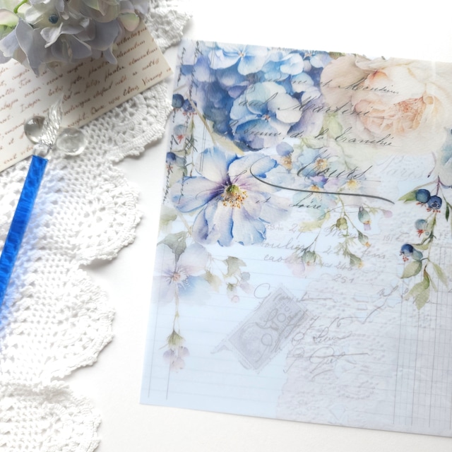 大柄の紫陽花や白薔薇を配置し、印象的なデザインに仕上げました。 トレーシングペーパーの透け感と合わせてお花がとても綺麗な透明感を演出します。 紙ものクラフトに是非活用してみてください♪ 〇セット内容〇 片面印刷 8枚1セット 〇サイズ〇 A4サイズ (21cm×29.7cm) 【素材】 トレーシングペーパー 印刷業者様に印刷をお願いしておりますので美しい仕上がりです。 【発送方法】 発送はクリックポストにて行っております。 心をこめて、丁寧な梱包を心がけています。 配送方法はクリックポストを利用しておりますが、注文数が多い場合重さや厚みの関係で複数に分けて発送する場合がございます。 ご了承のうえ、ご注文いただければ嬉しいです。 またその他配送方法に関しましてご相談等ございましたら、ご注文前にメッセージなどいただけたら嬉しいです。 【商用利用に関して】 原本、現品に限り、おすそわけファイルやジャンクジャーナルなどの制作に利用可能です。 必ず有形の形で素材の一部(加工などをして)として利用してください。 原則リンクやクレジットは必要ないです。 ですが、使用したことをどこかに明記していただけたときにはとても嬉しいです。 【禁止事項】 コピーをしての販売、転売(定価より高い価格での販売)、複製、模倣をしないでください。 その他モラルの範囲内での使用をお願いいたします。 不明点などがありましたら、お気軽にお問い合わせください。 【ご注意】 お使いの機器によりモニターの解像度が異なります。 画像と実際の商品では色味が異なる場合がありますこと、ご理解ください。