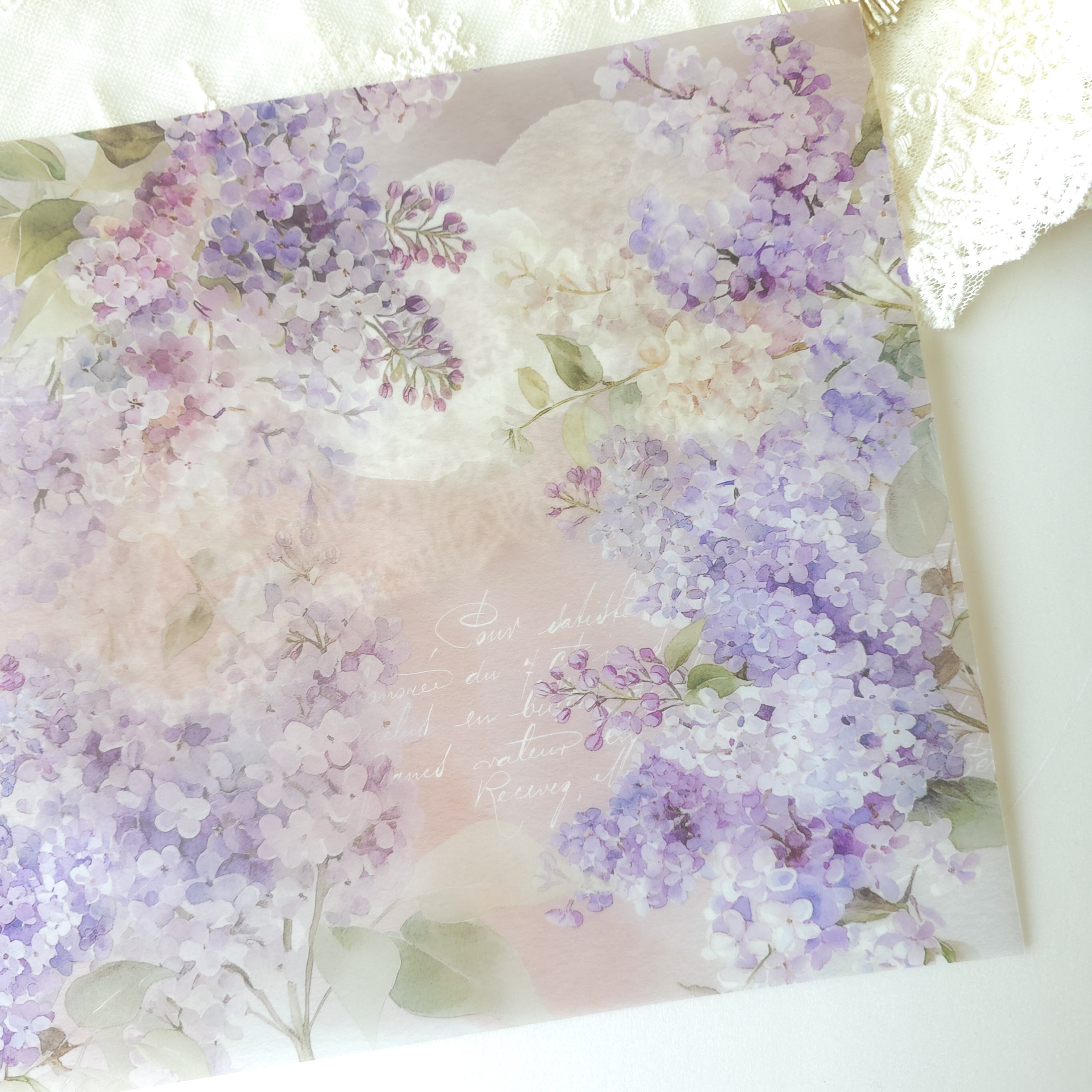 ライラックを大胆に使い、紫のコントラストが美しいペーパーに仕上げました。