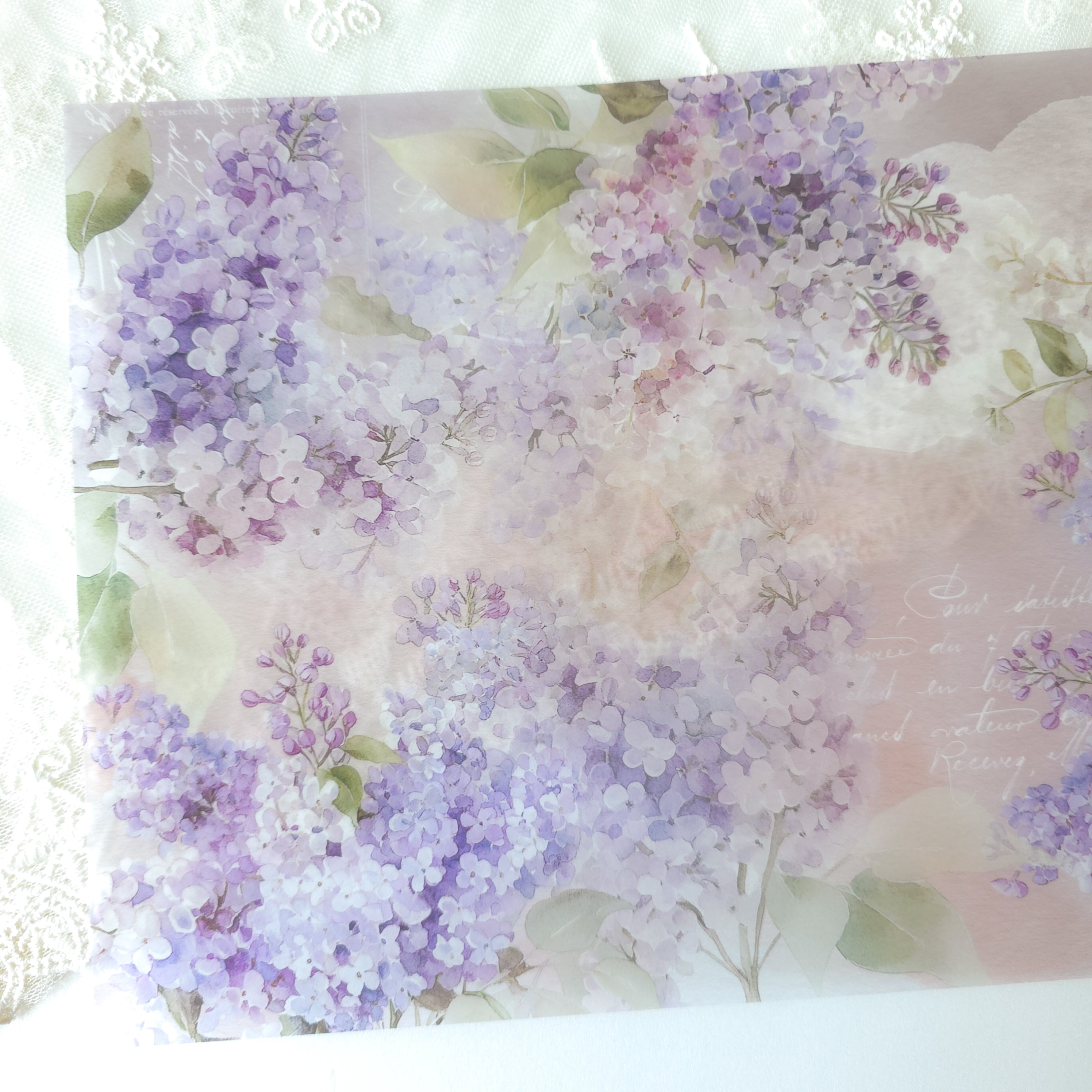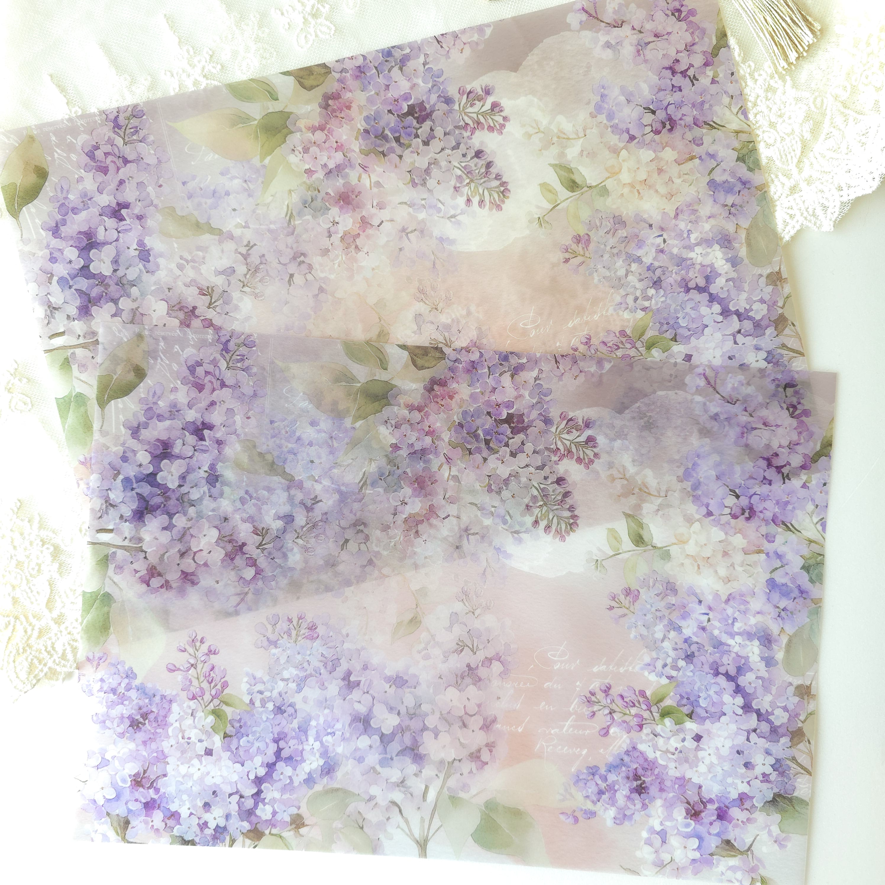 トレーシングペーパーの透明感にライラックがとても映えます。