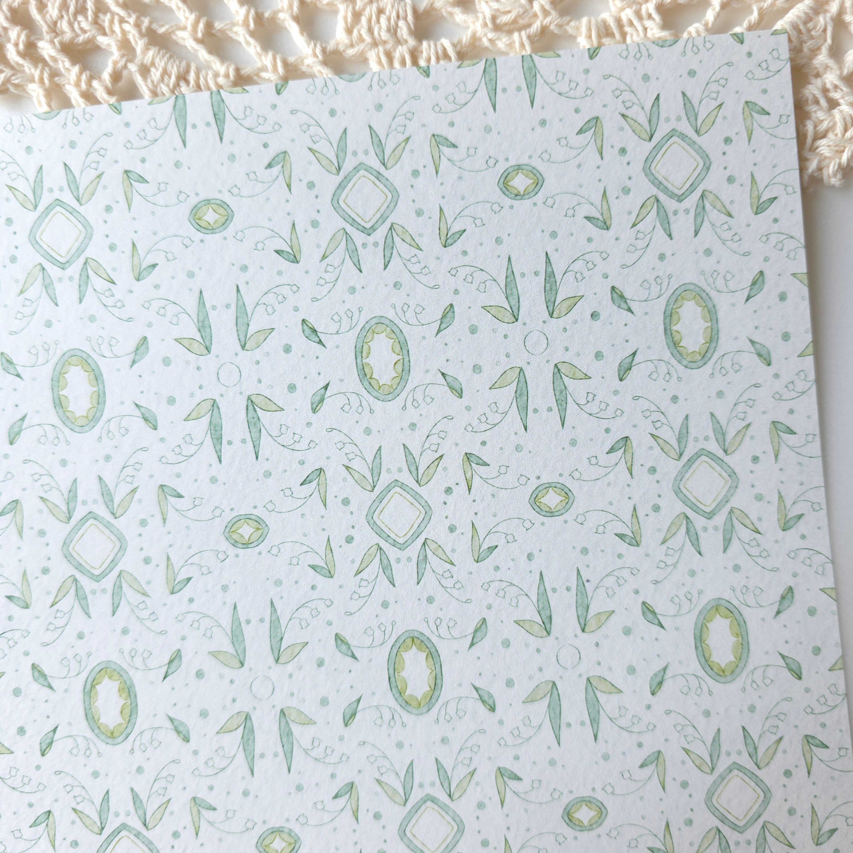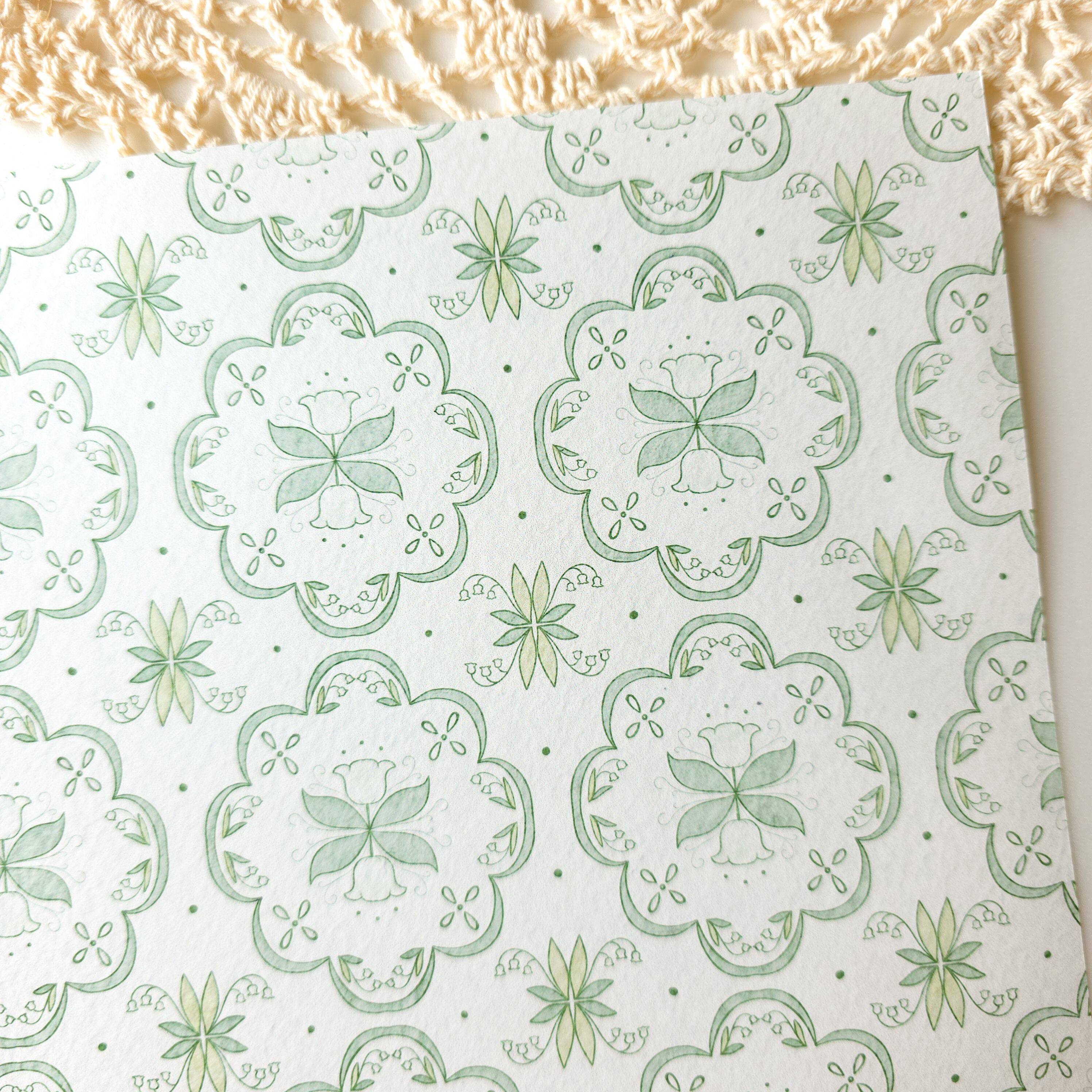 タイルのようなデザインの至るところにすずらんのモチーフを散りばめました。