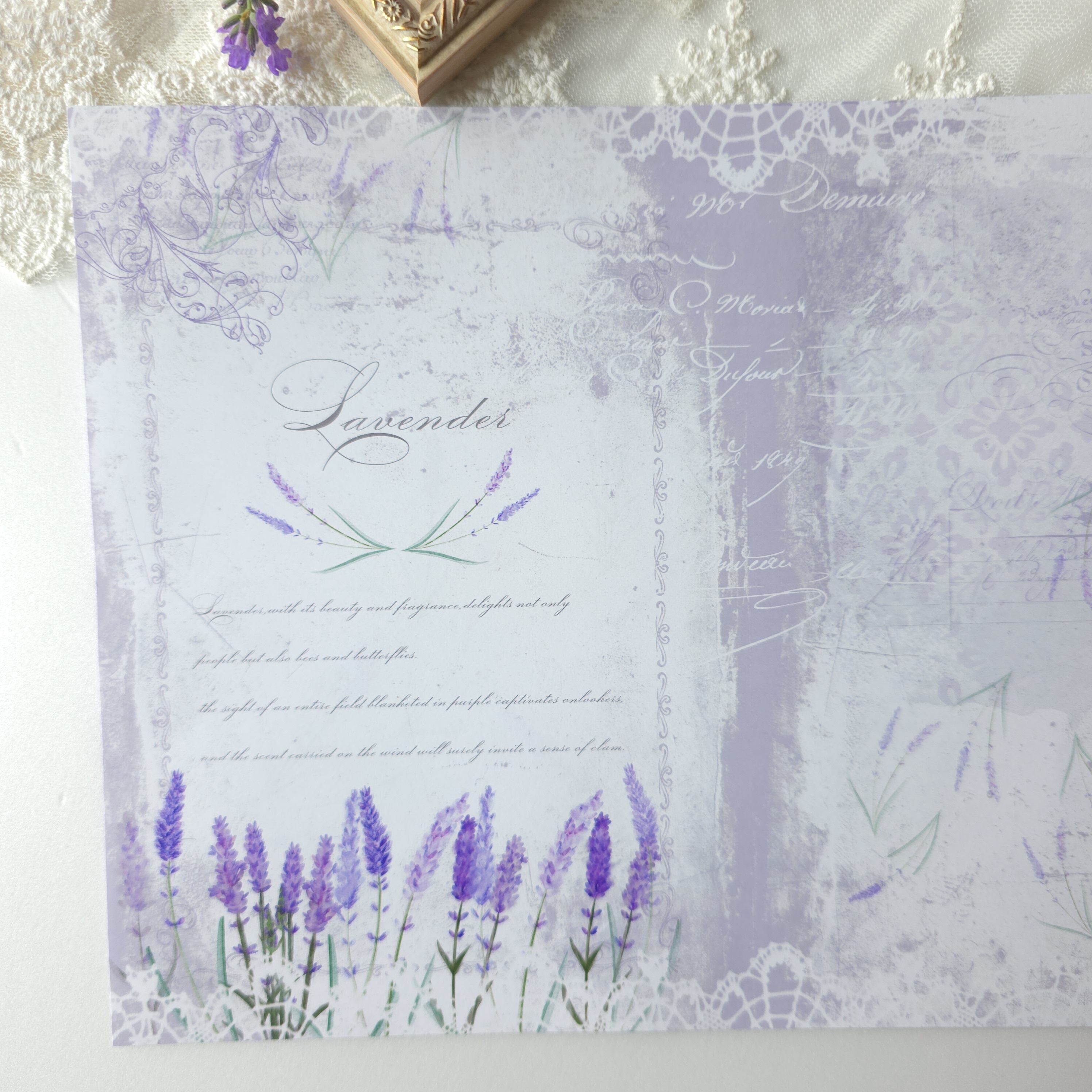 ラベンダーのモチーフをテーマにシャビー感を意識してデザインしました。