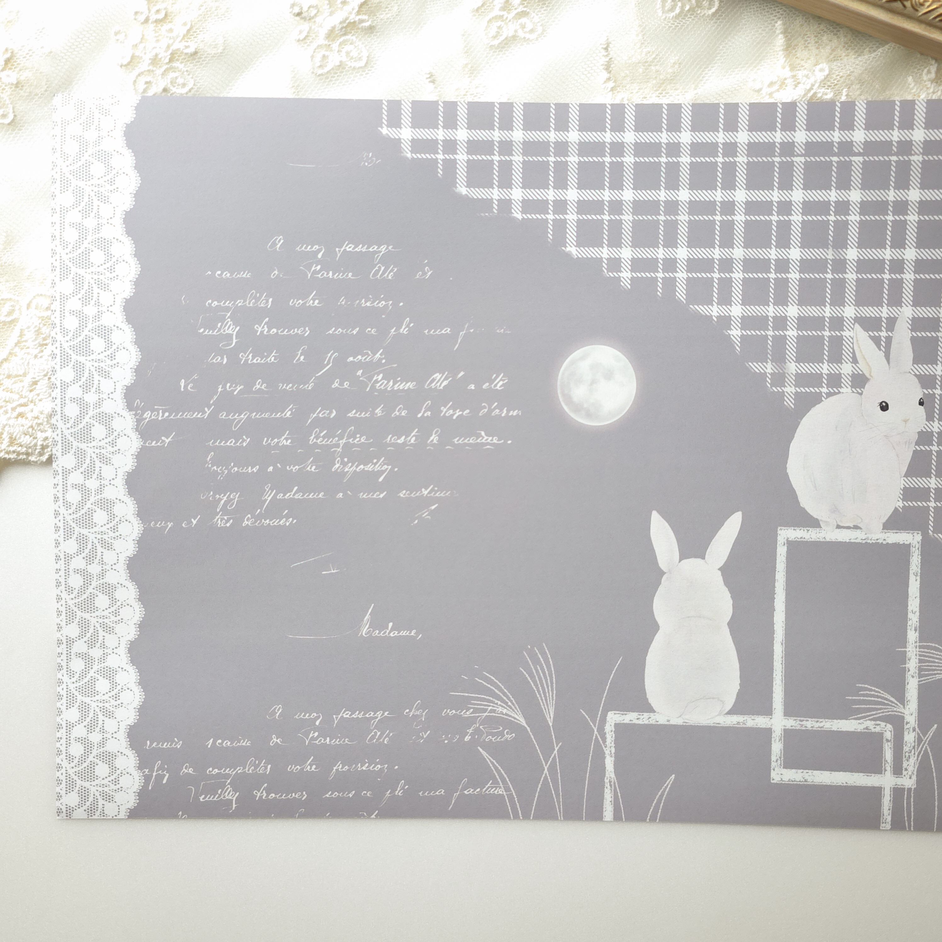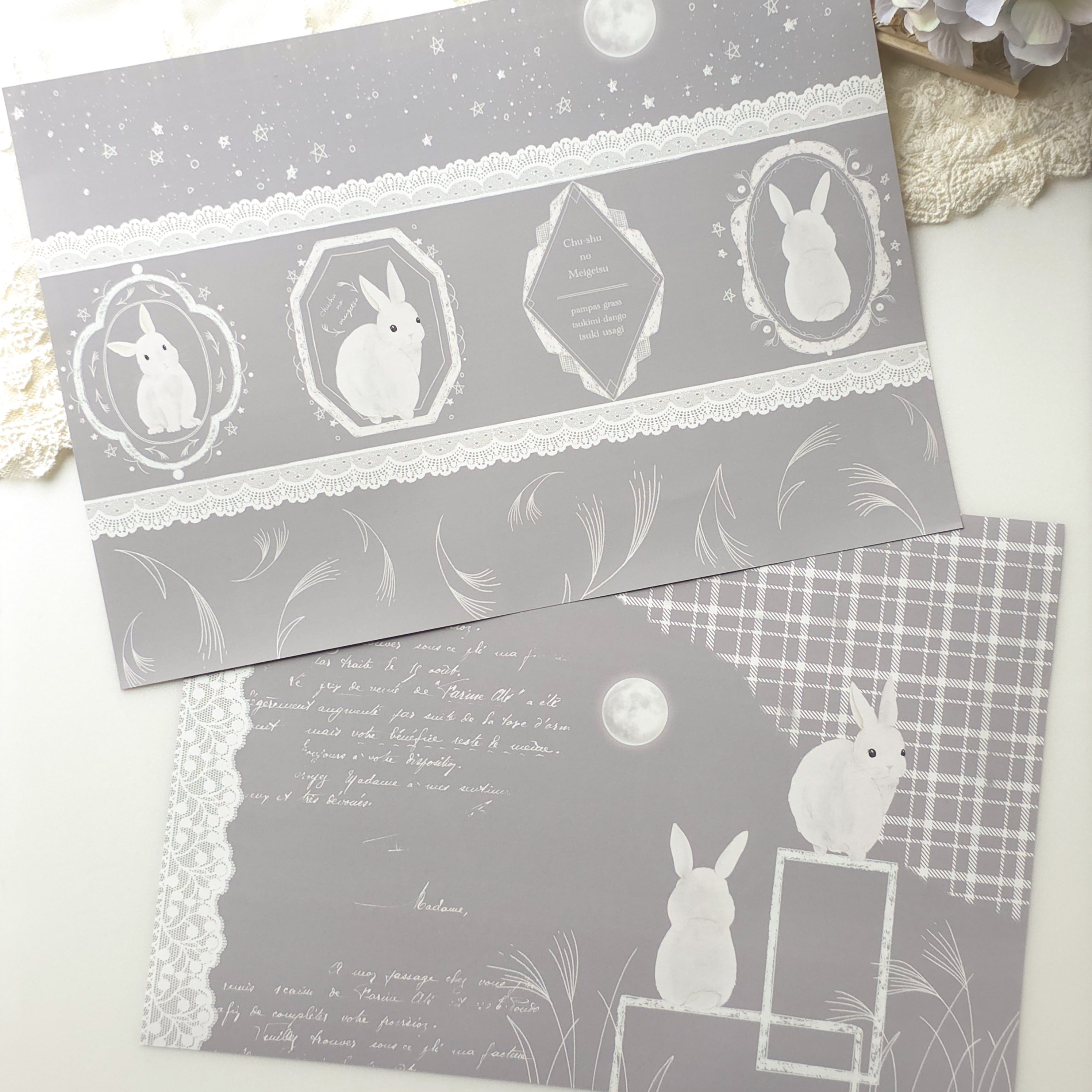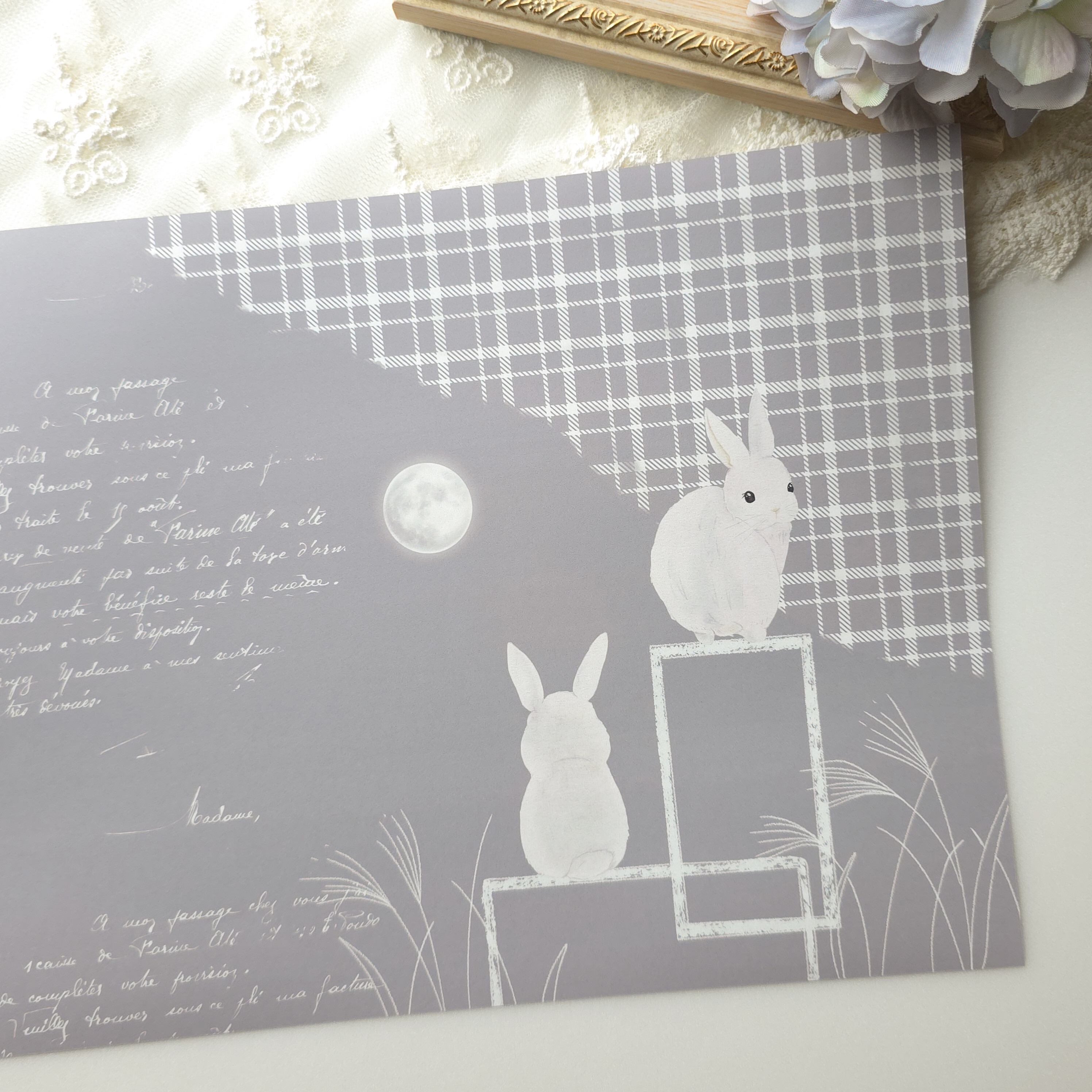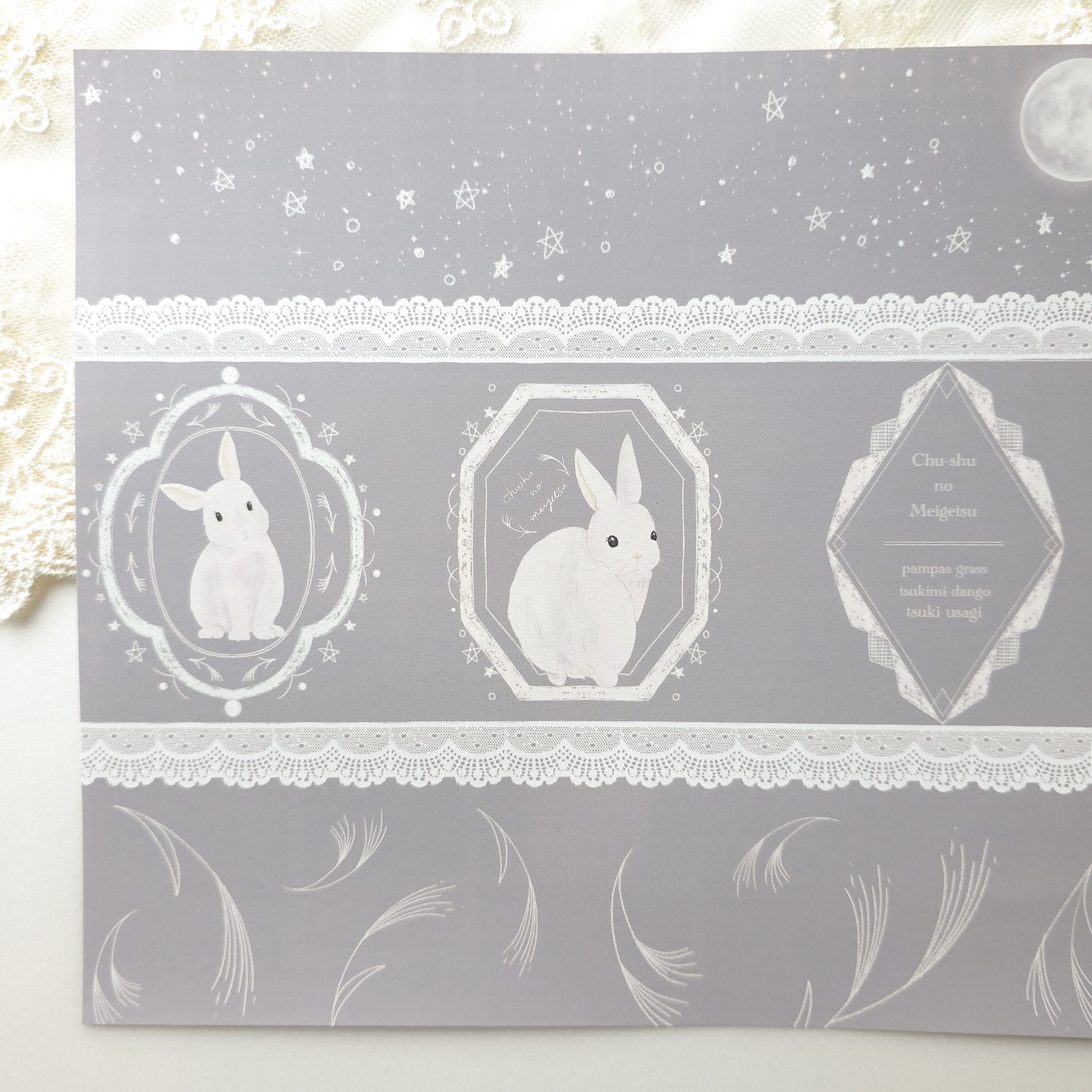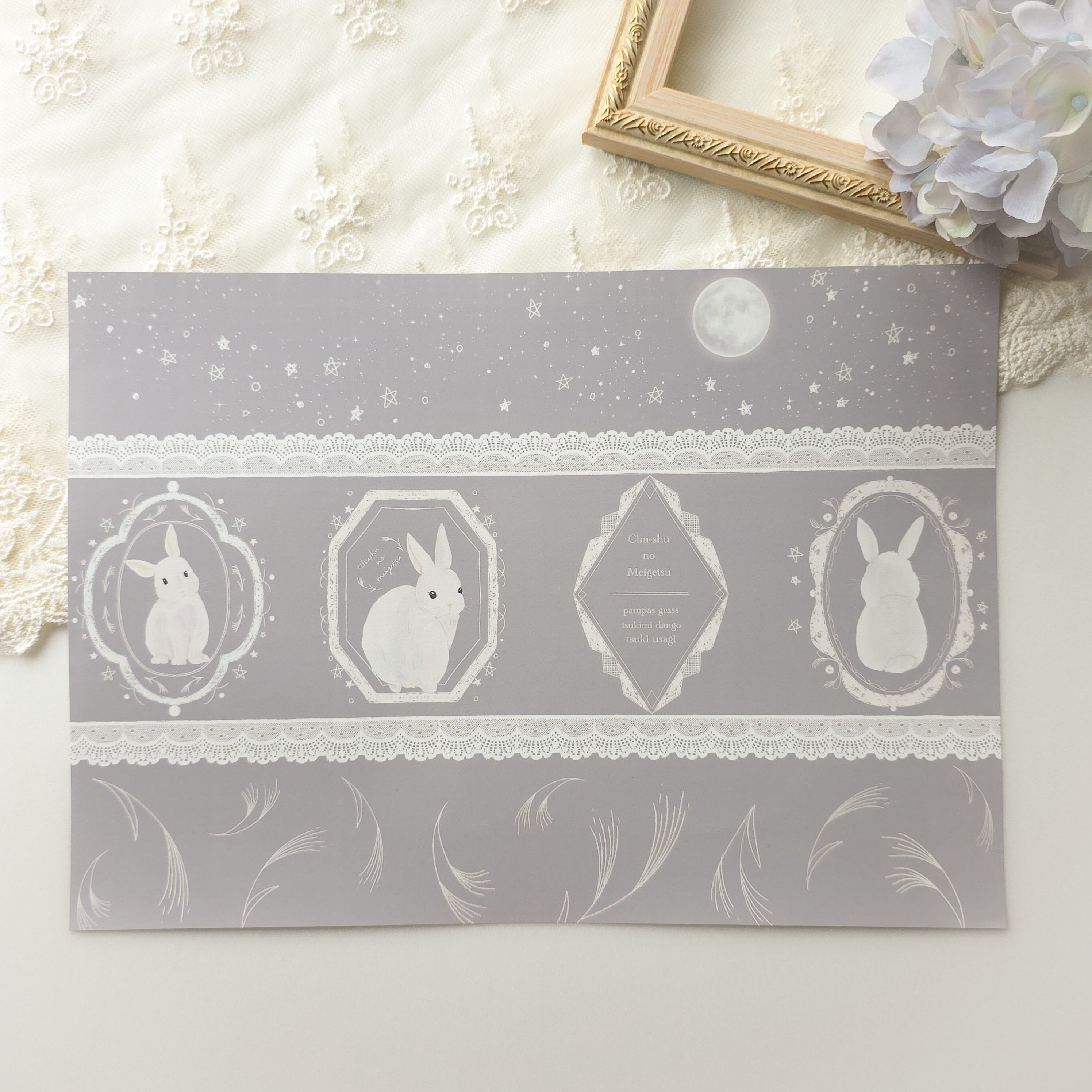ベースは落ち着いたグレー、白いうさぎとデザインでシックでモノトーンな雰囲気に。