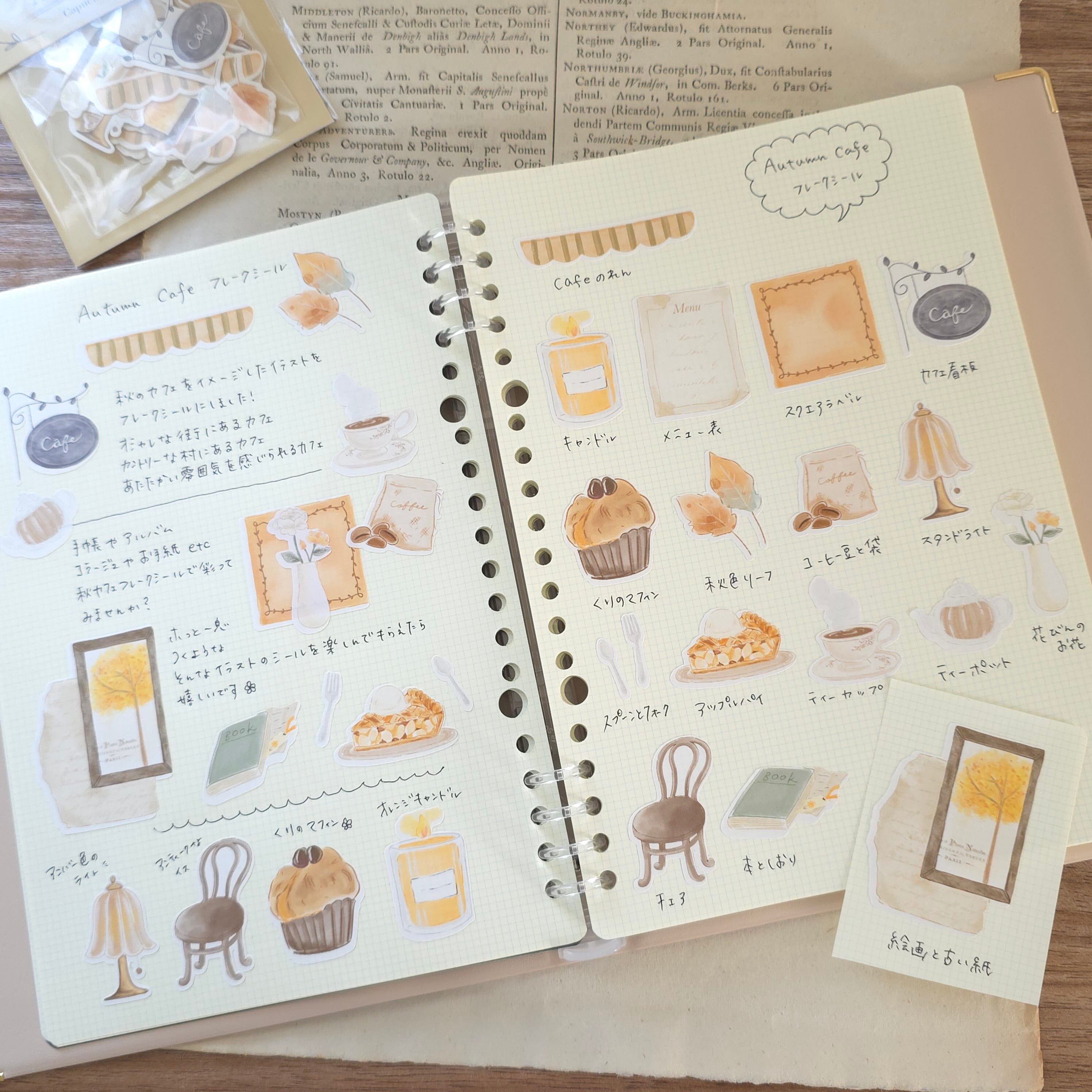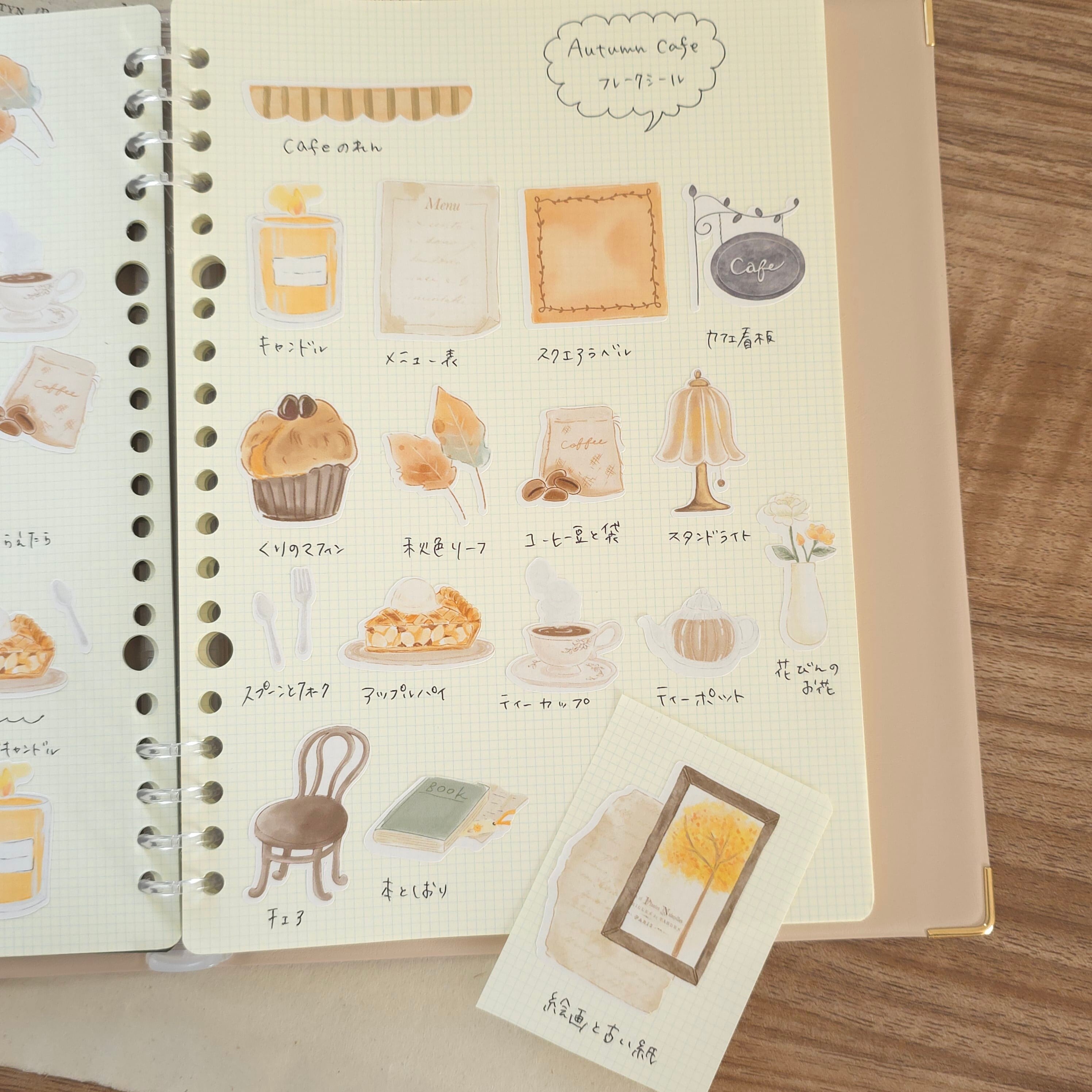 秋のカフェをイメージしたモチーフのフレークシールです。