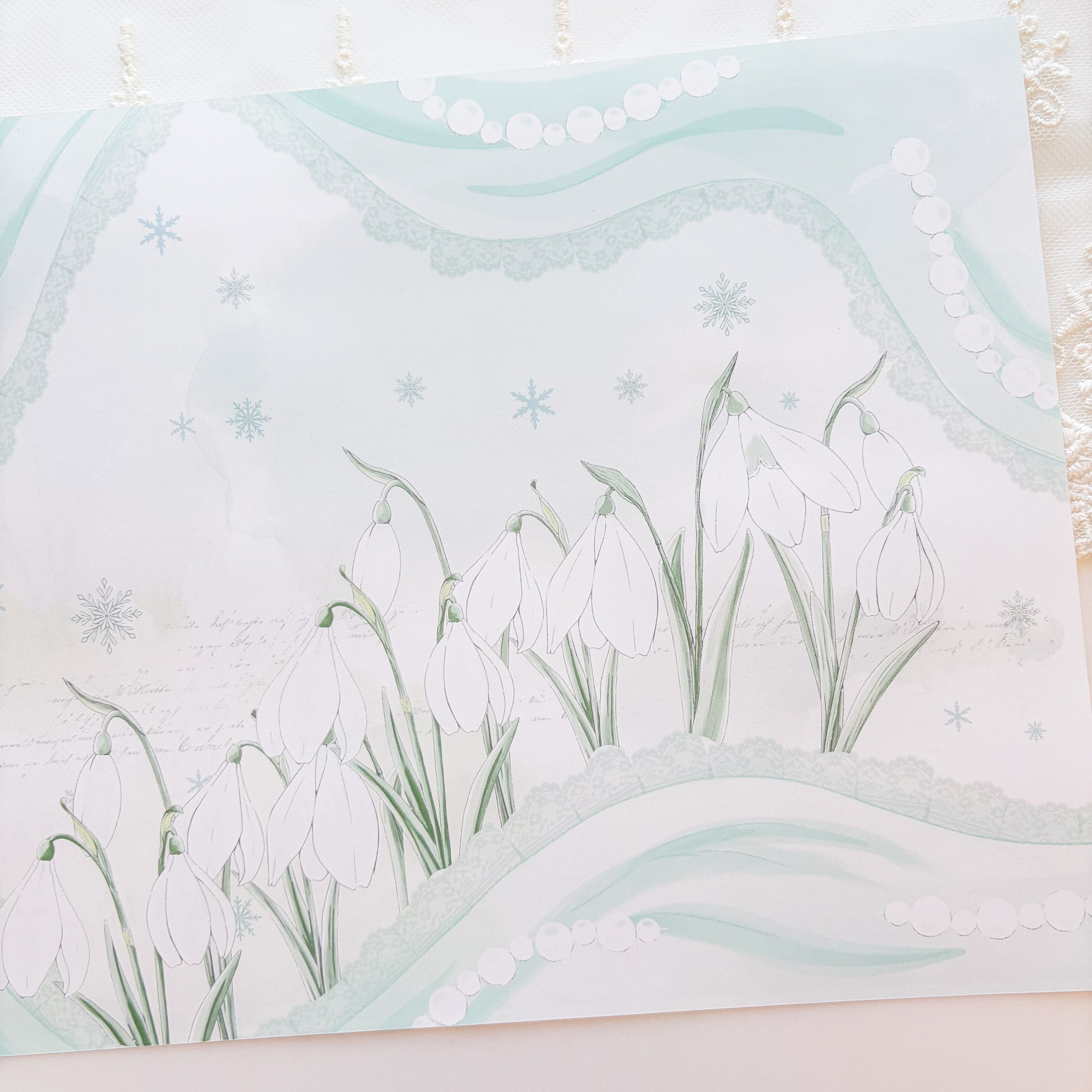 透明感と瑞々しさ、凛とした冬の気配に健気に咲くスノードロップを描きました。