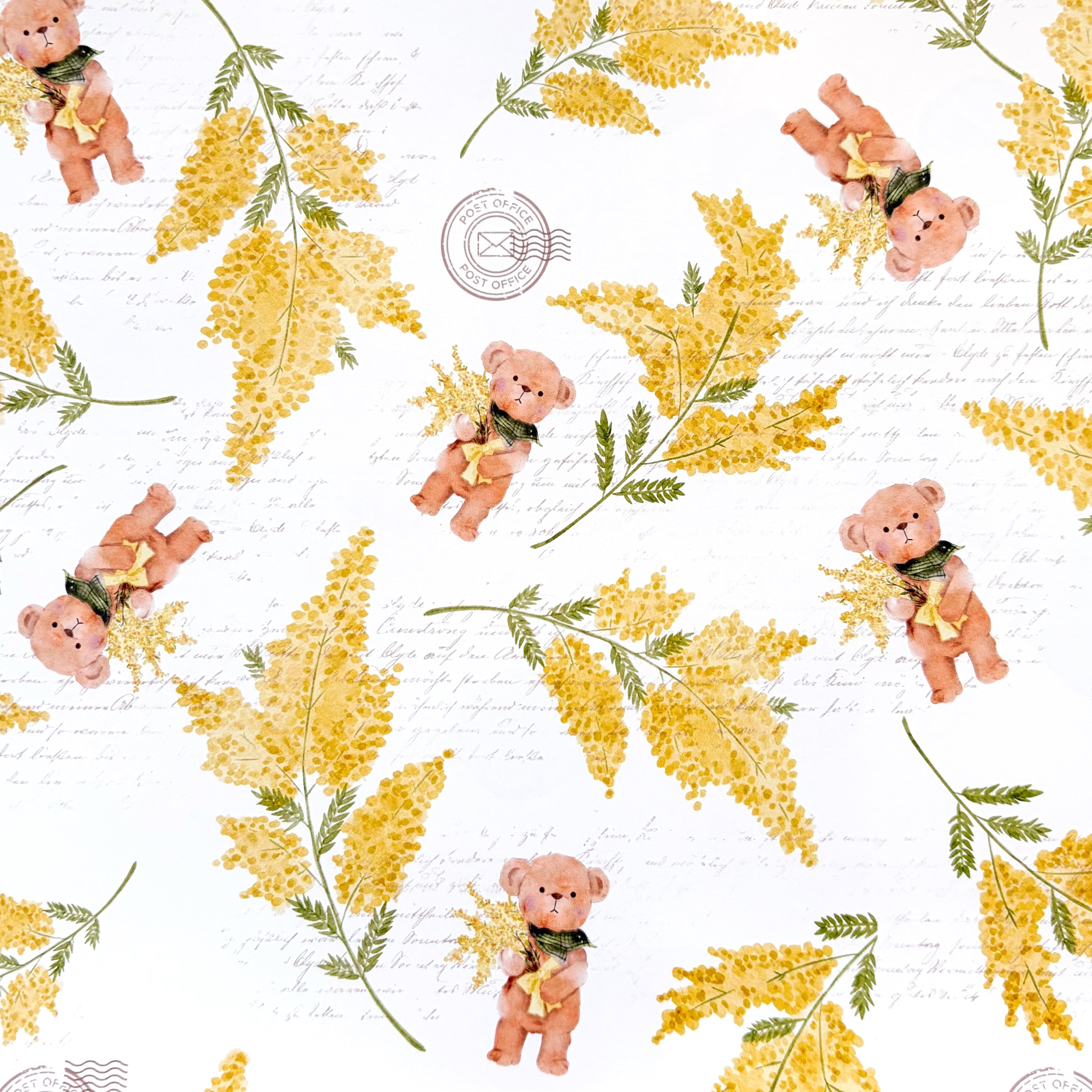 ミモザシリーズから、ミモザとくまがテーマのデザインペーパーです。