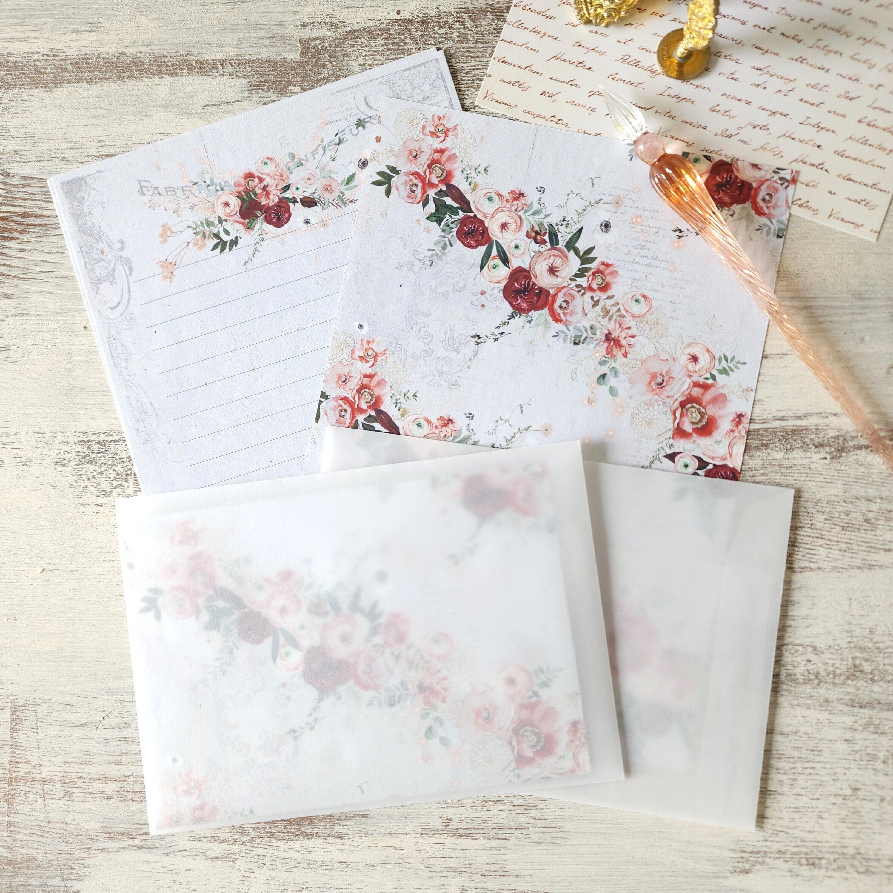 封筒はトレーシングペーパーなので、便箋の花々が引き立ちますよ。