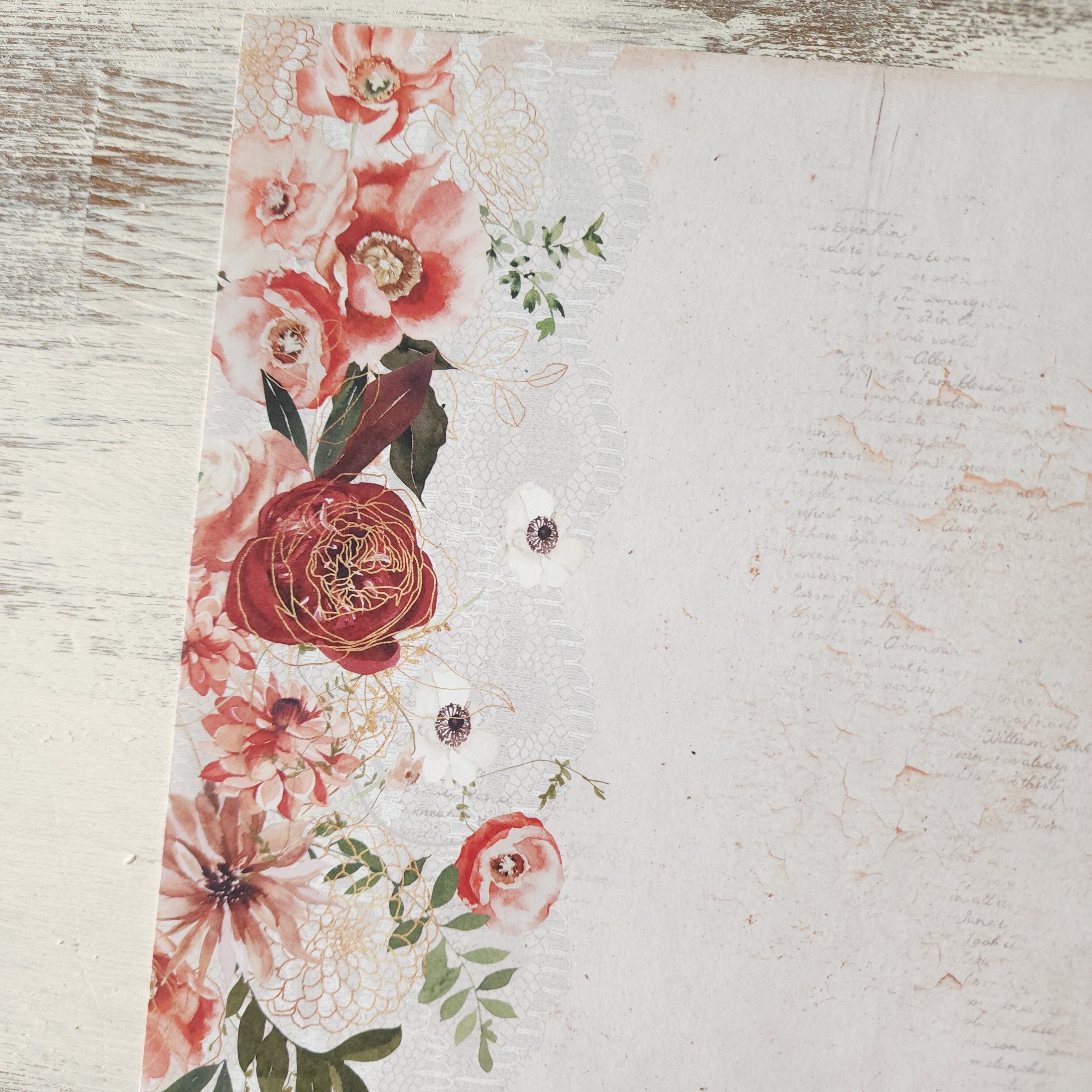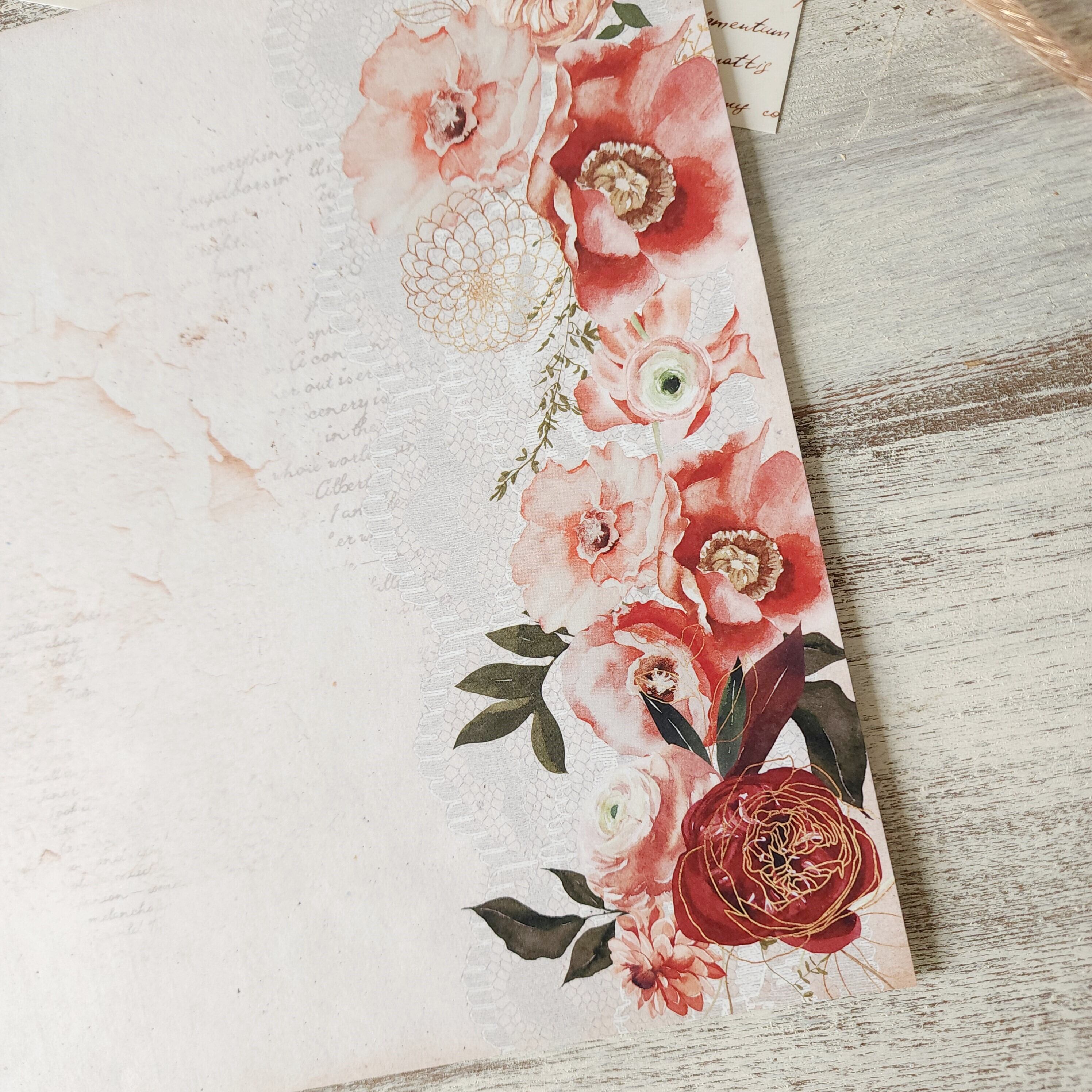 赤い花々が目を惹くA4ペーパーをデザインしました。