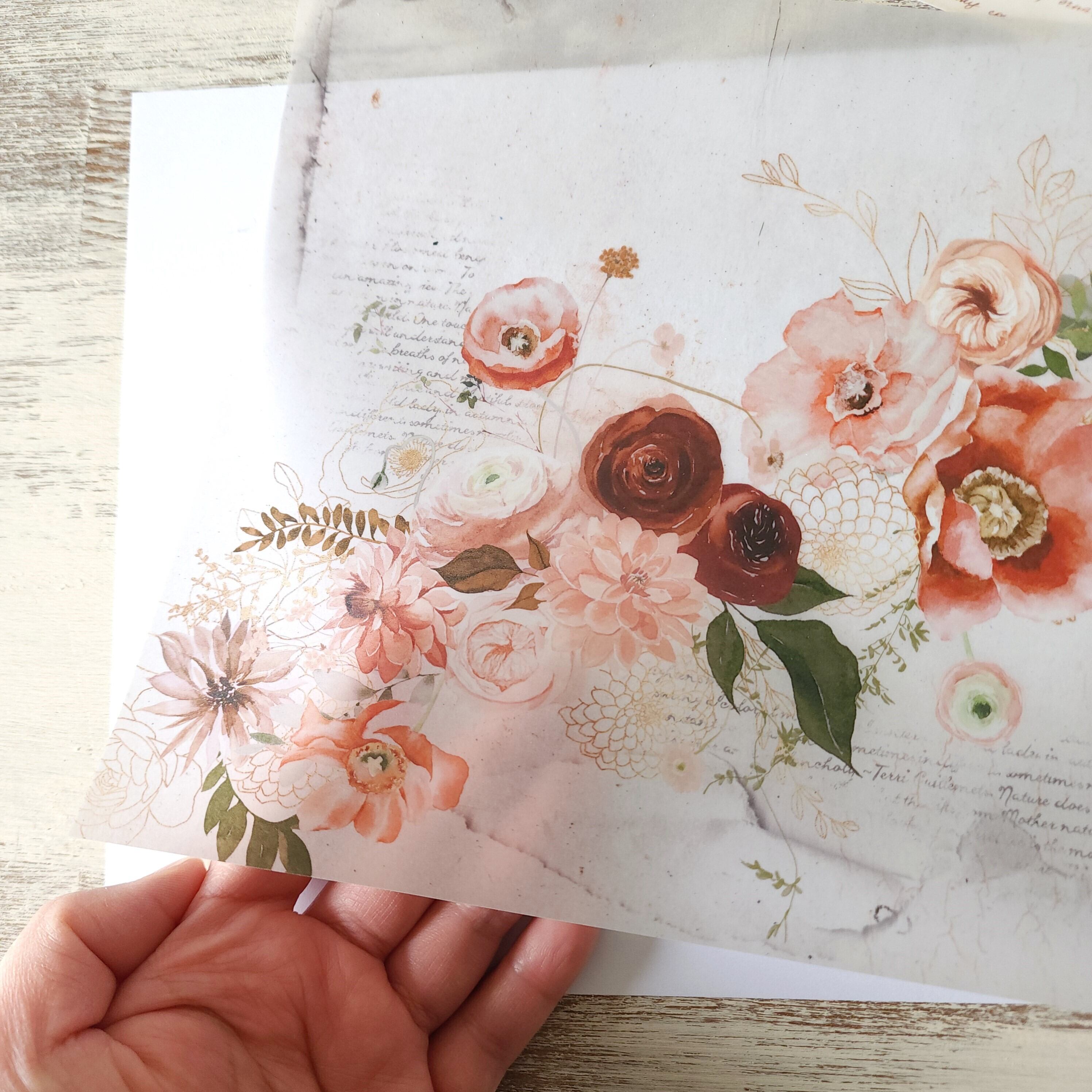 トレーシングペーパーの透け感が深みのある赤い花をより際立たせています。