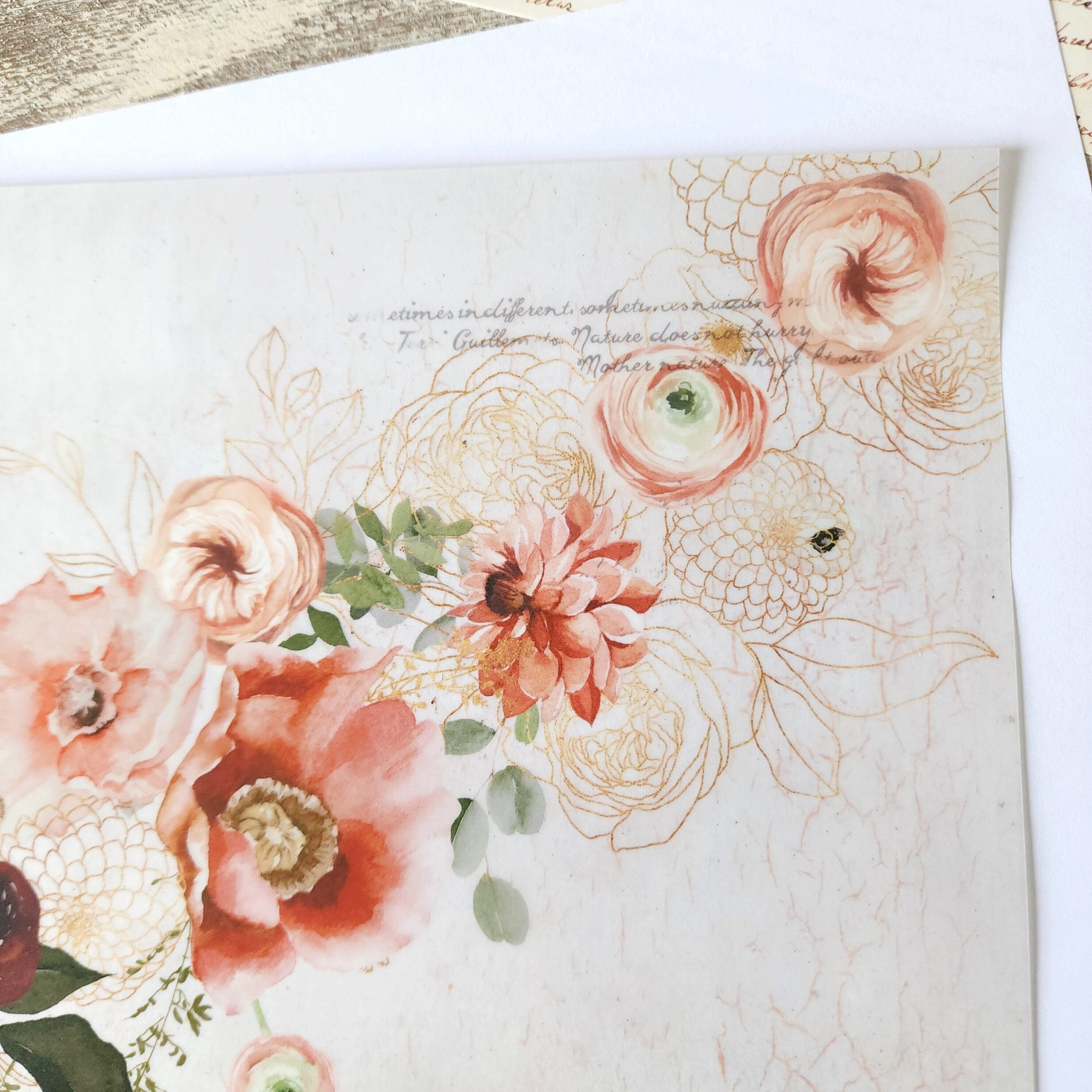 赤い花々が目を惹くA4ペーパーをデザインしました。