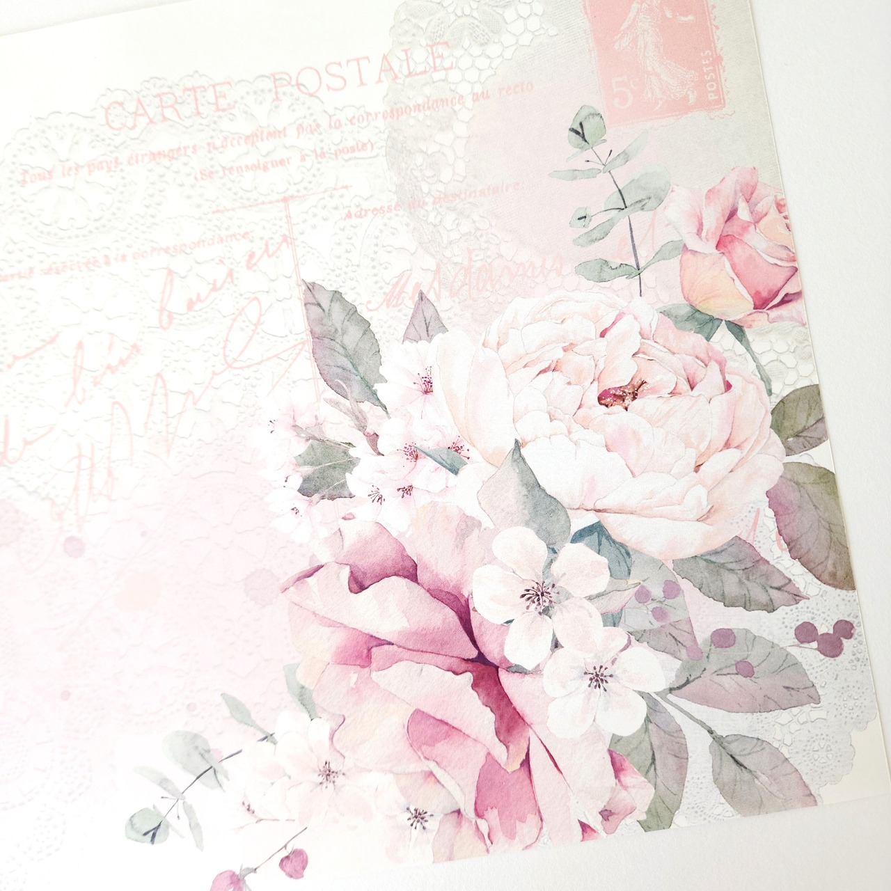 桜のもつ儚さと美しさ、薔薇の華やかさが印象的なデザインペーパーです。