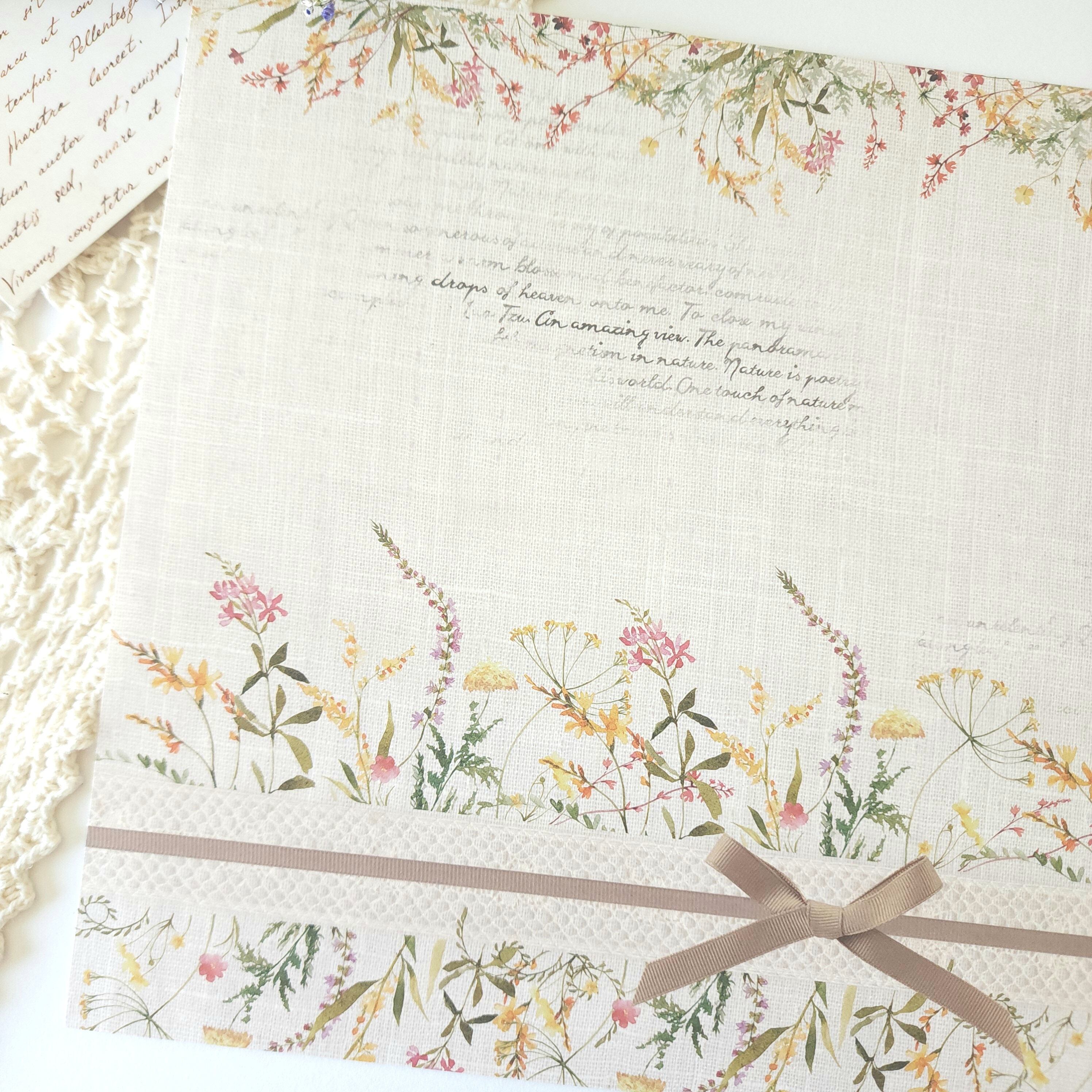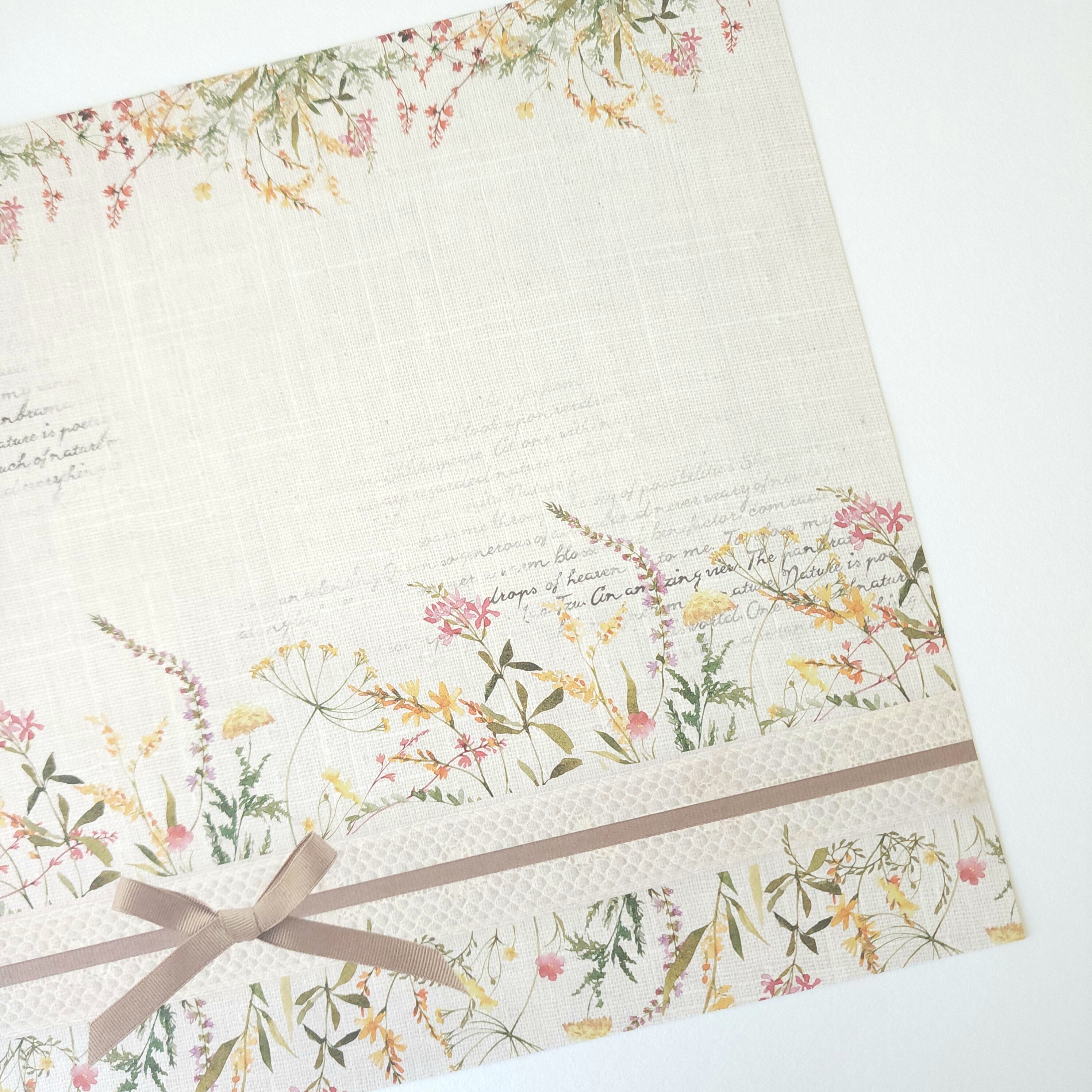 リネン地にイエロー系のお花が可愛いデザインペーパーです。