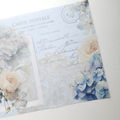優しいブルーに紫陽花や白薔薇が咲くデザインペーパーです。