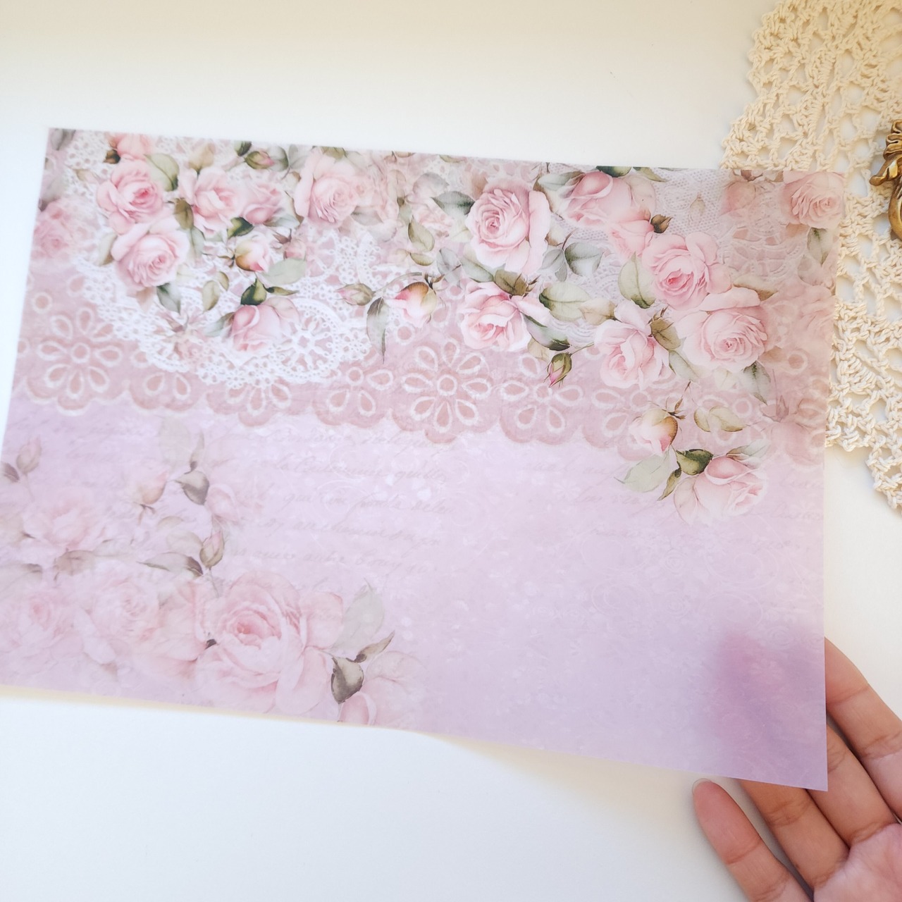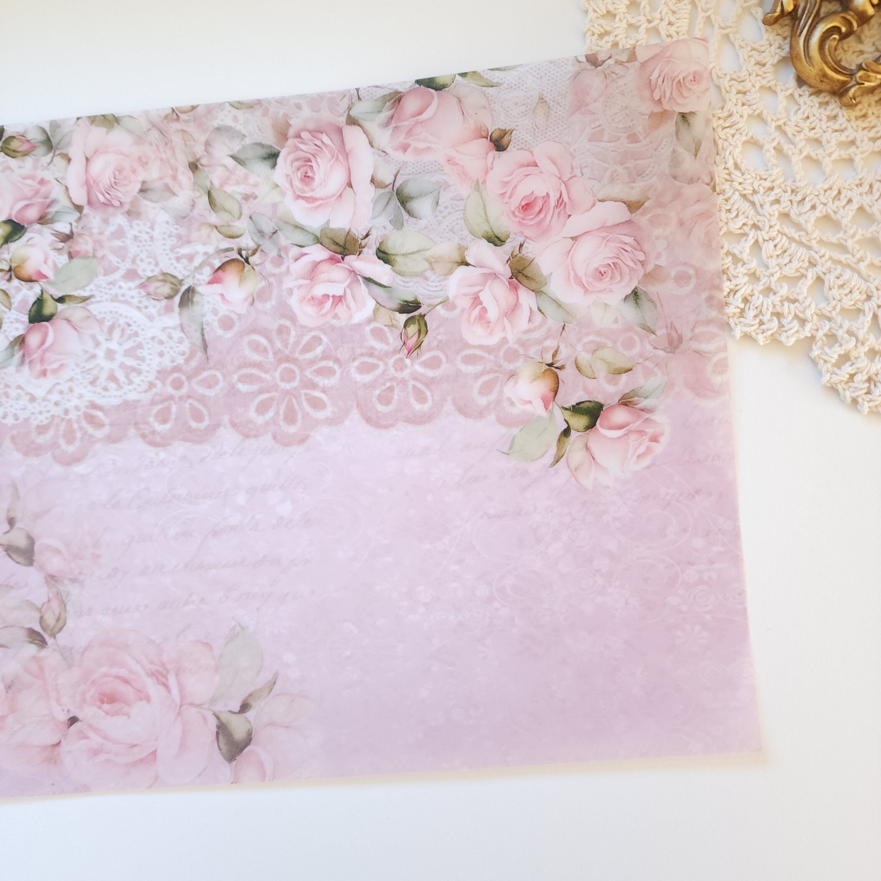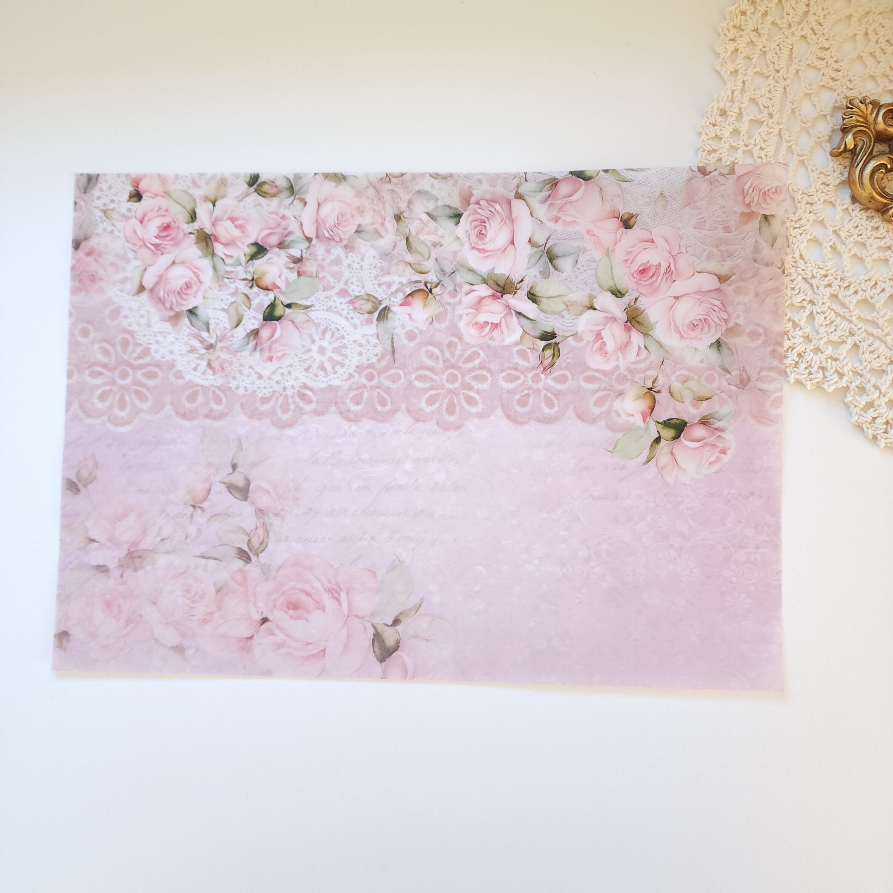 ピンクのレースとローズが華やかで可愛いトレーシングペーパーです。