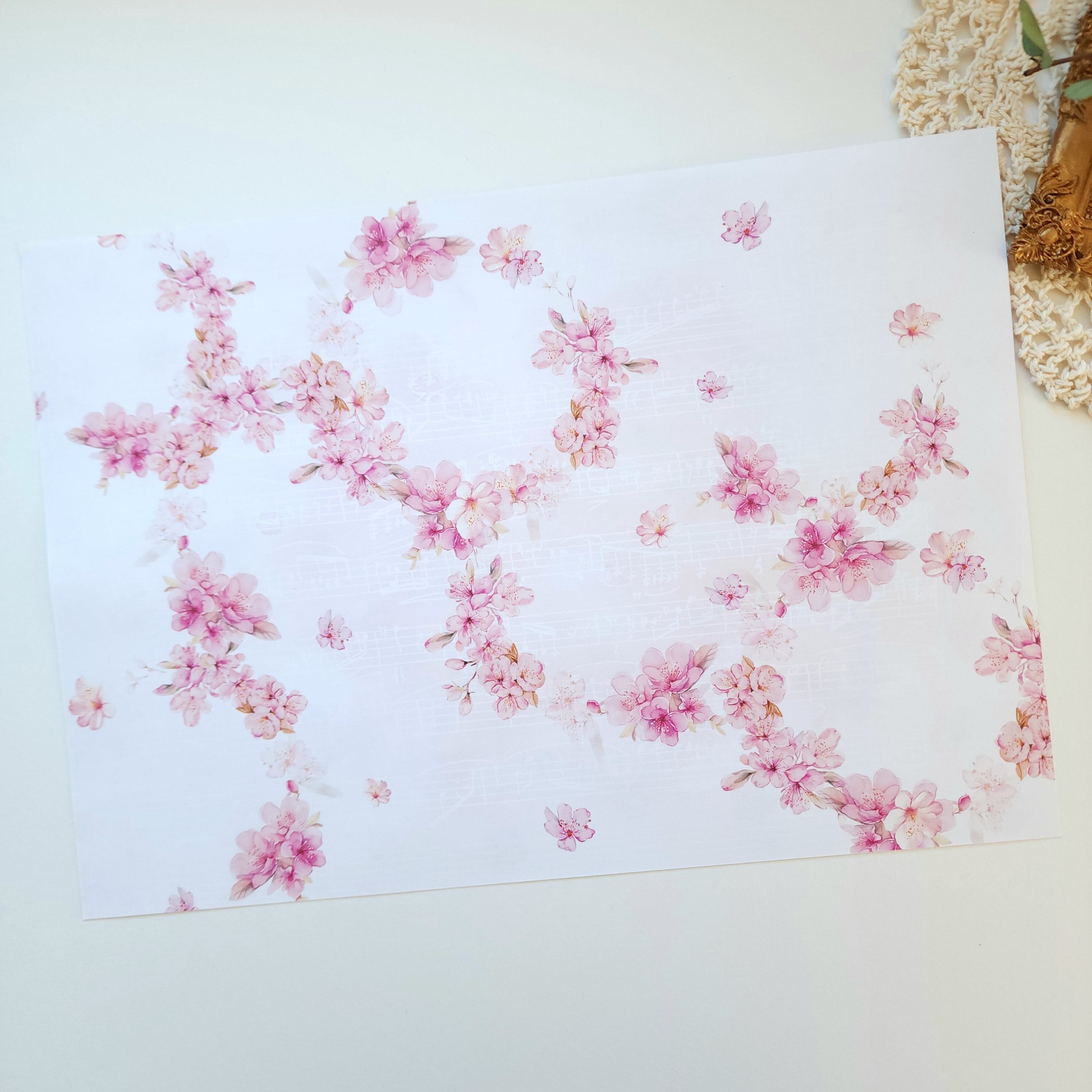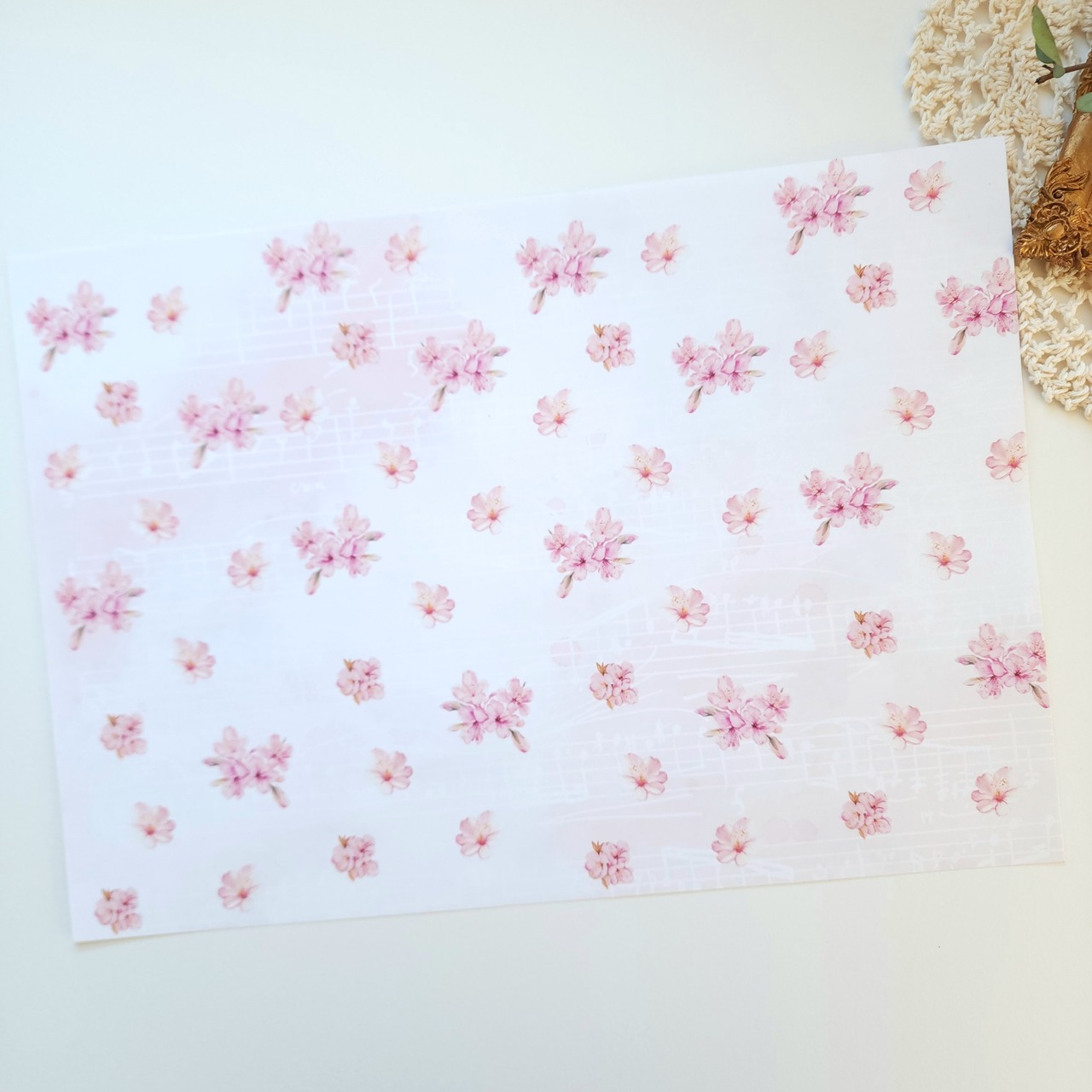 音符の上に桜が踊り出すようなデザインペーパーです。