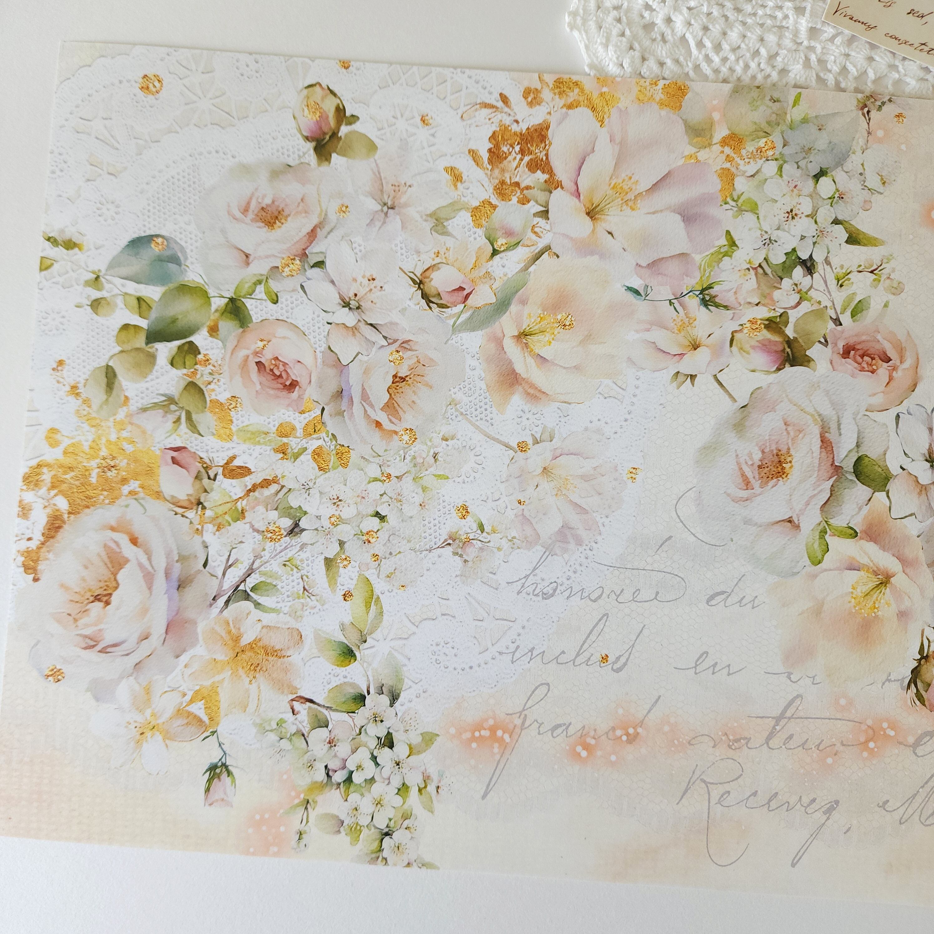 華やかな白いバラが存在感を増すデザインペーパーです。