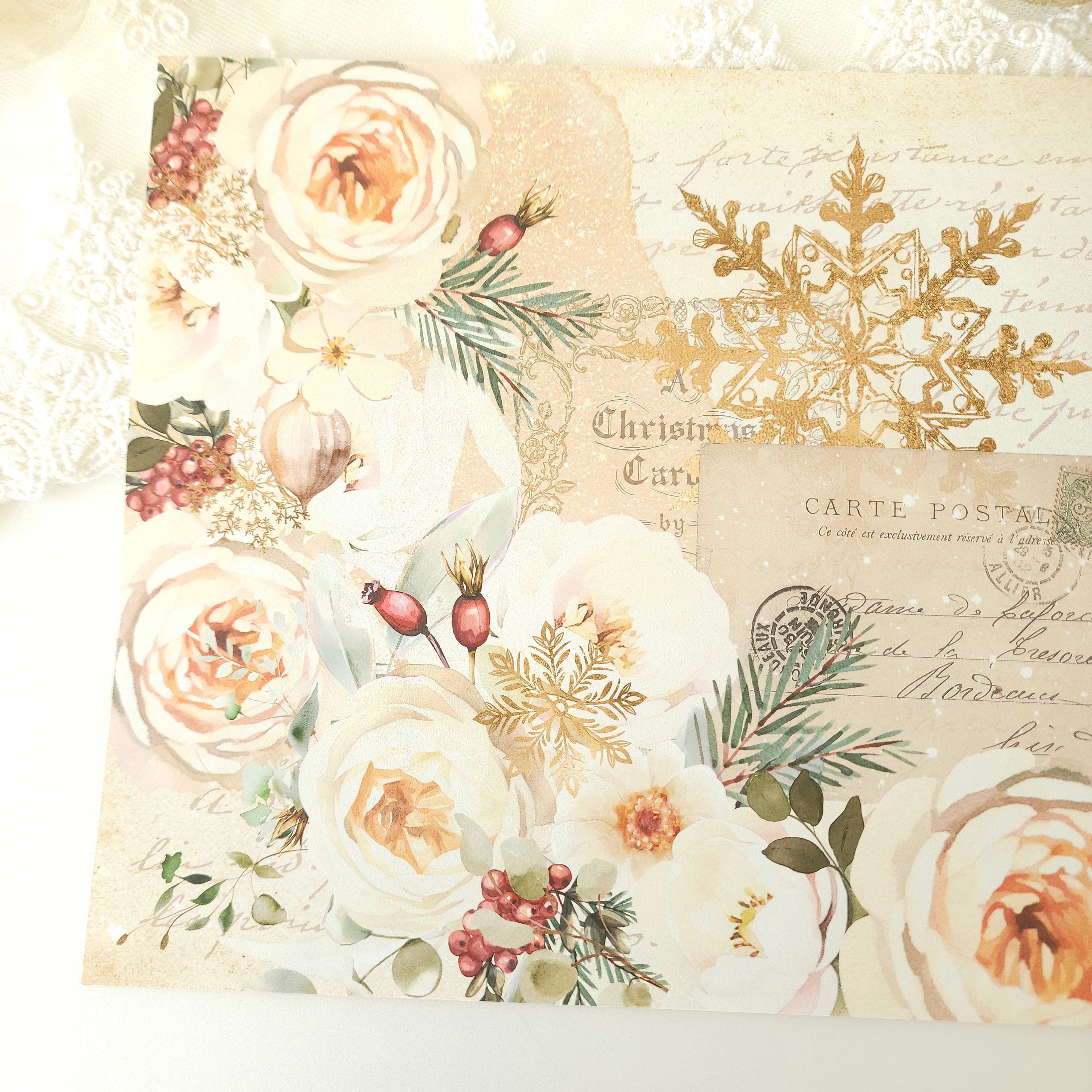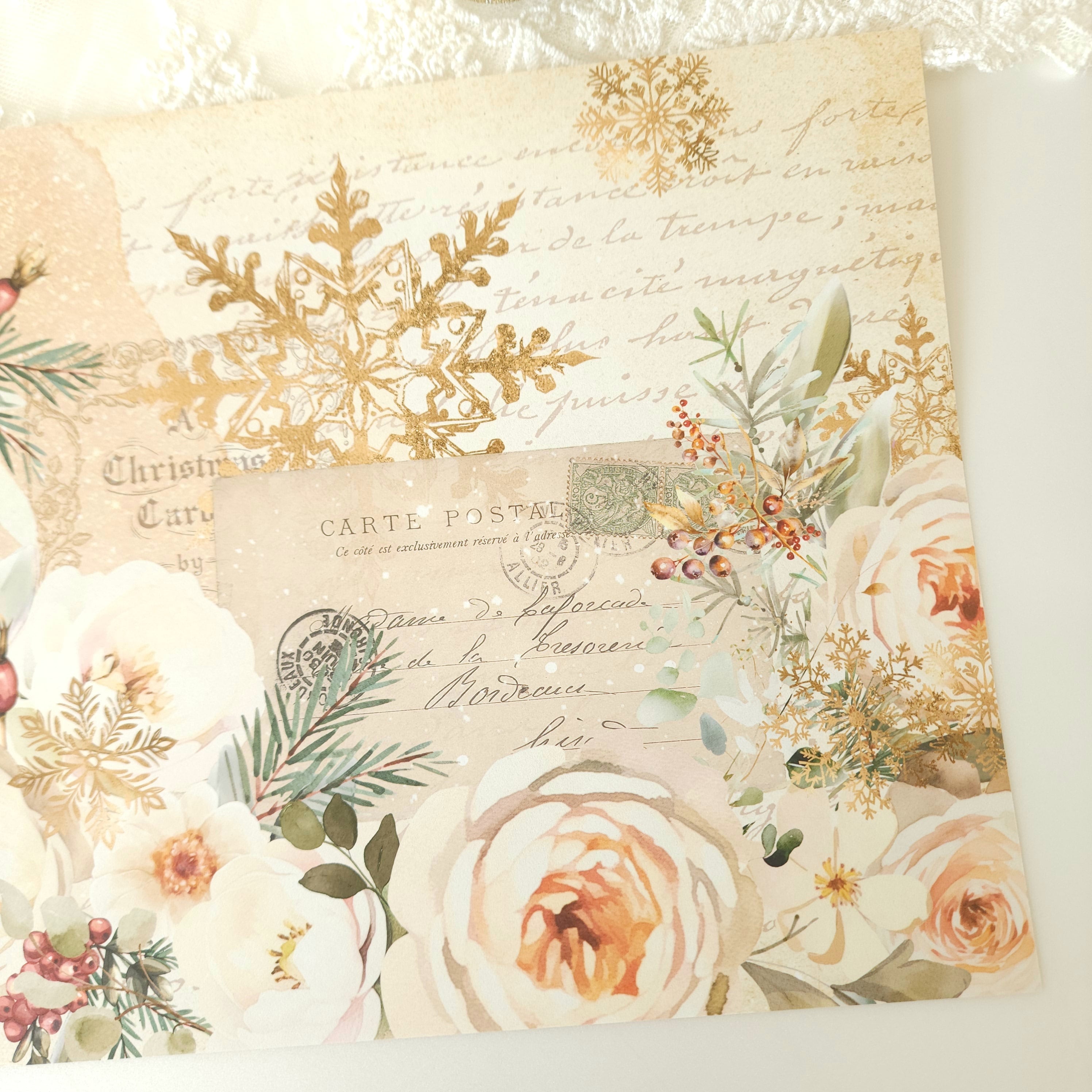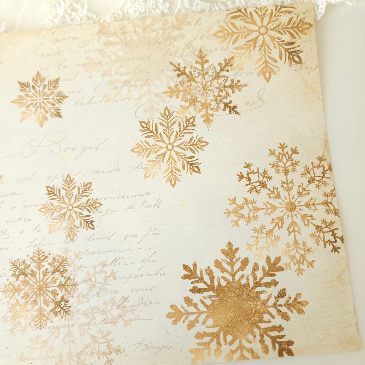 ホワイトローズとゴールドの雪の結晶が華やかなデザインペーパーです。