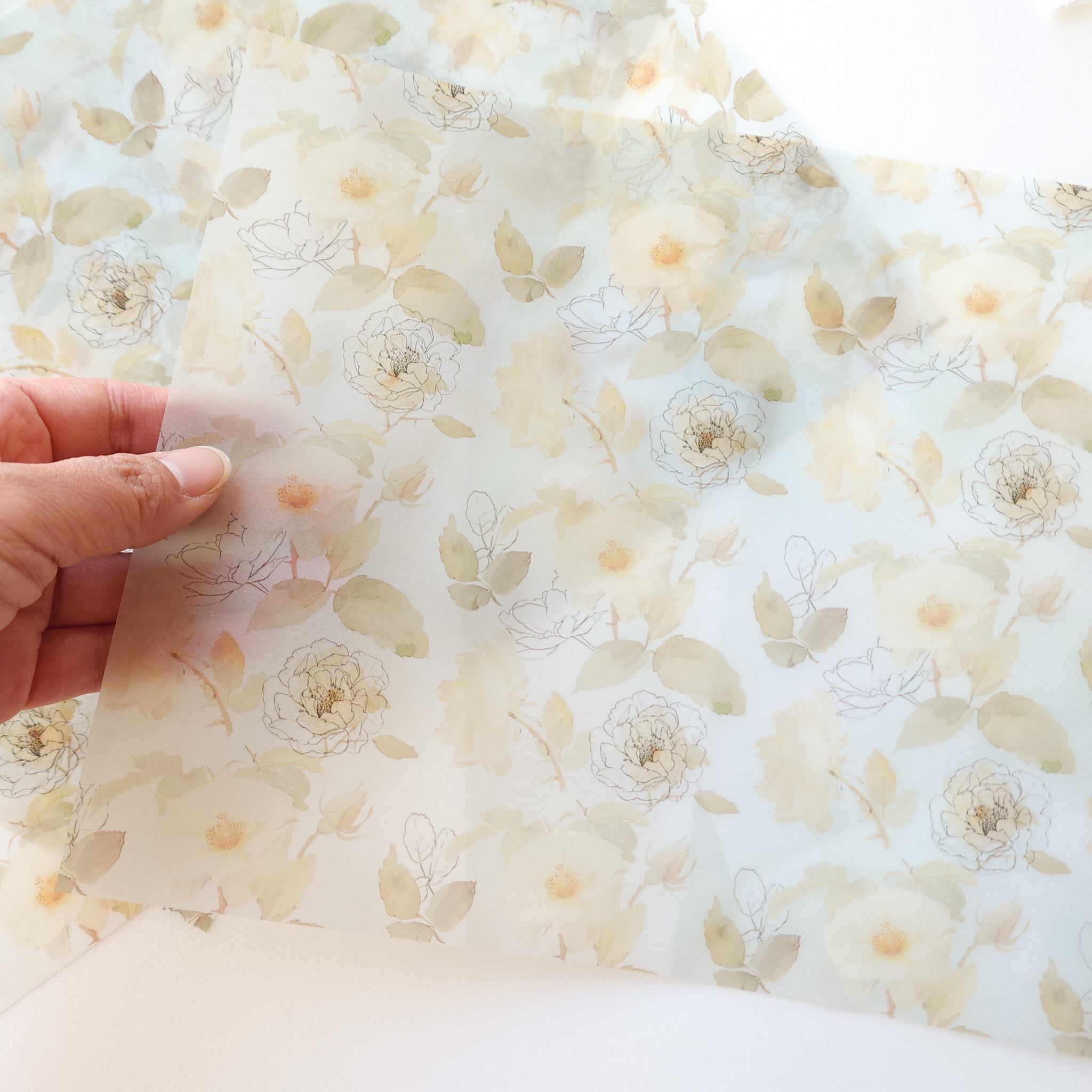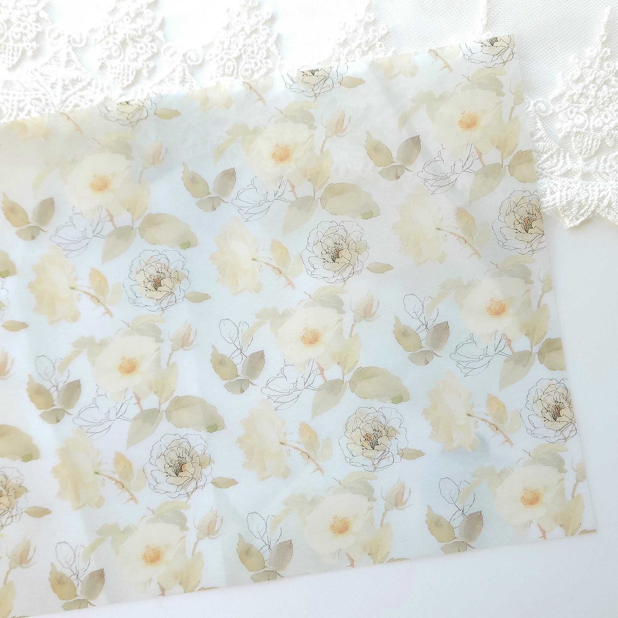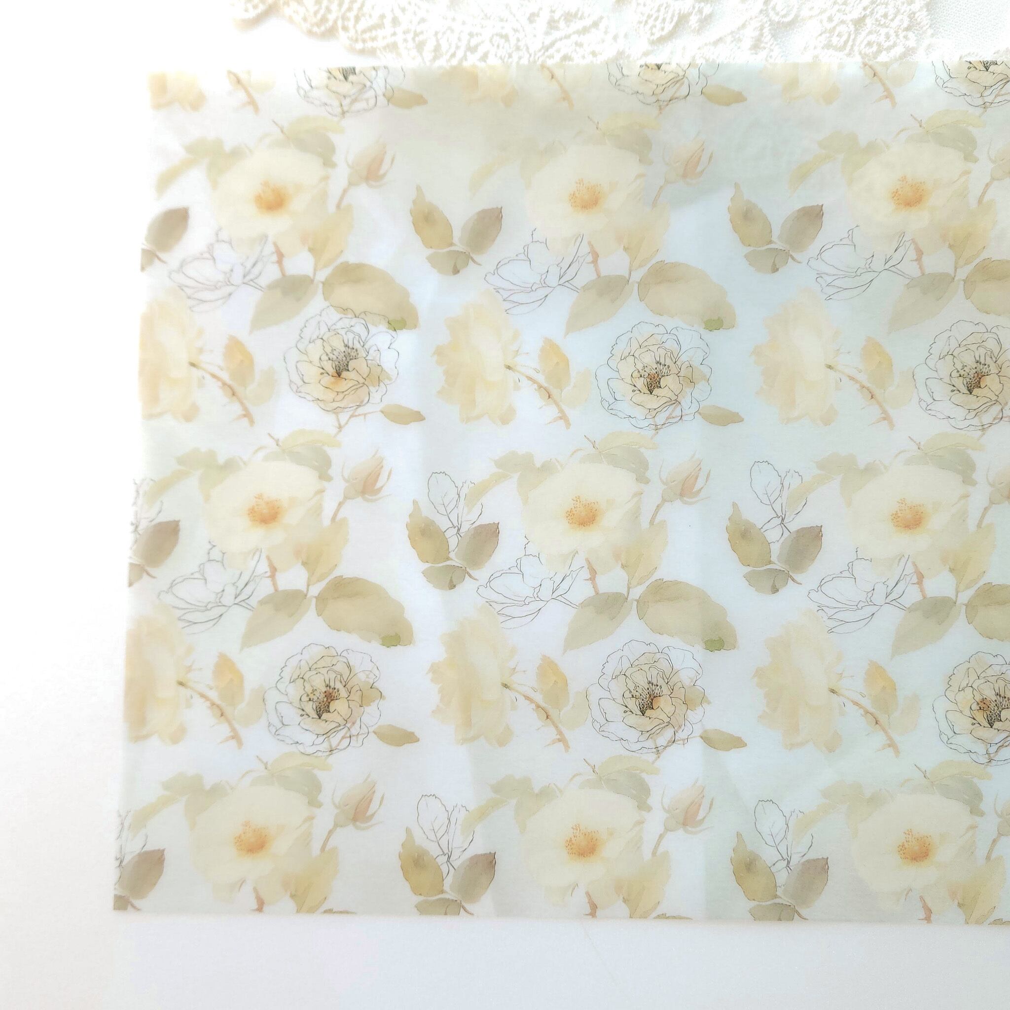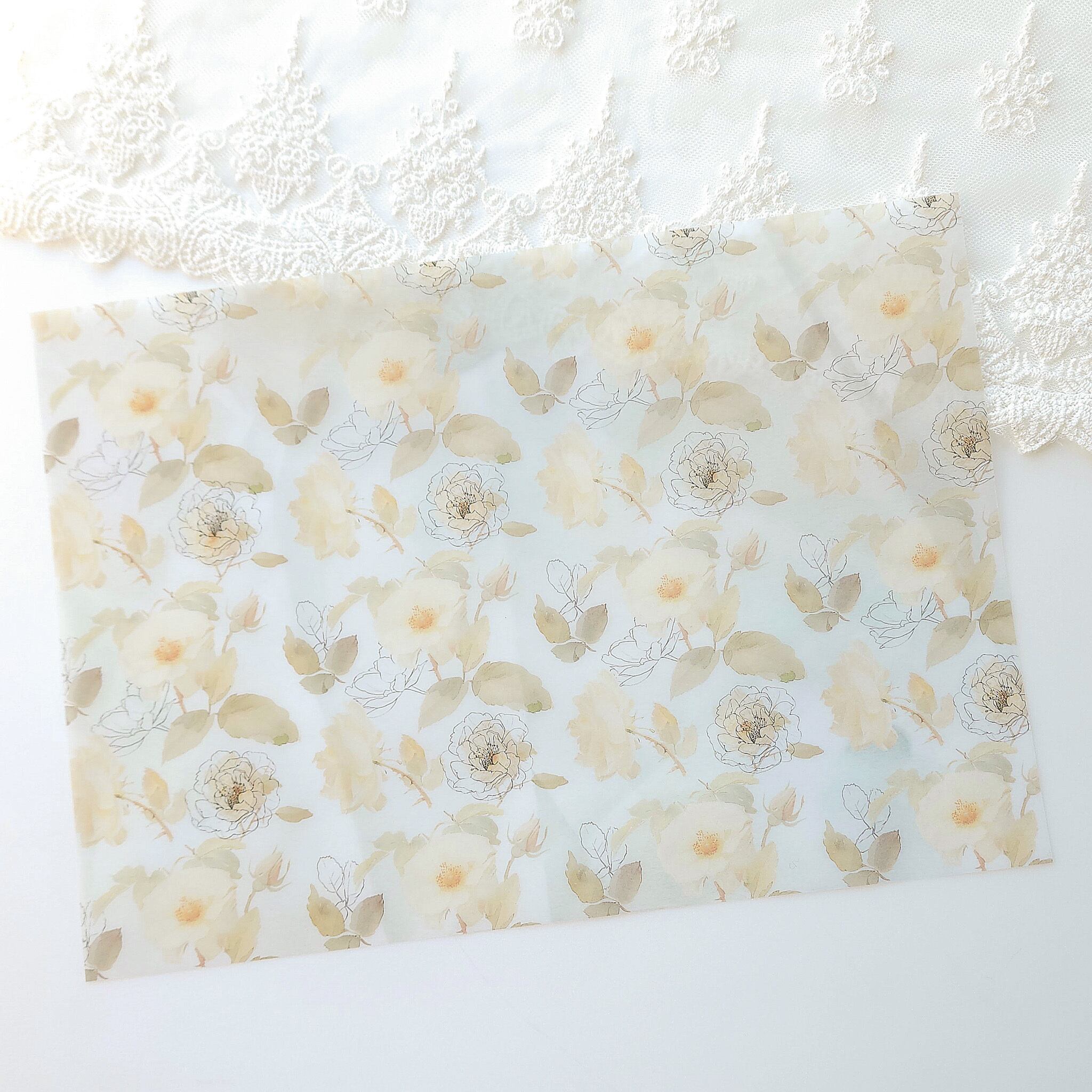 白薔薇のパターンデザインに線画の薔薇をプラスして、上品で美しいトレーシングペーパーに仕上がっています。